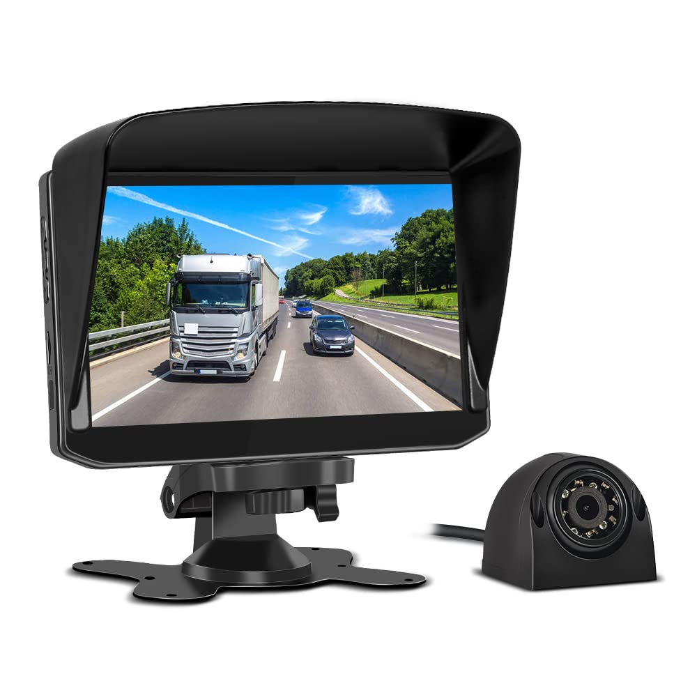 VSYSTO Cámara de respaldo 1080P impermeable visión nocturna kit DVR integrado con monitor de 7 pulgadas, asistente de estacionamie
