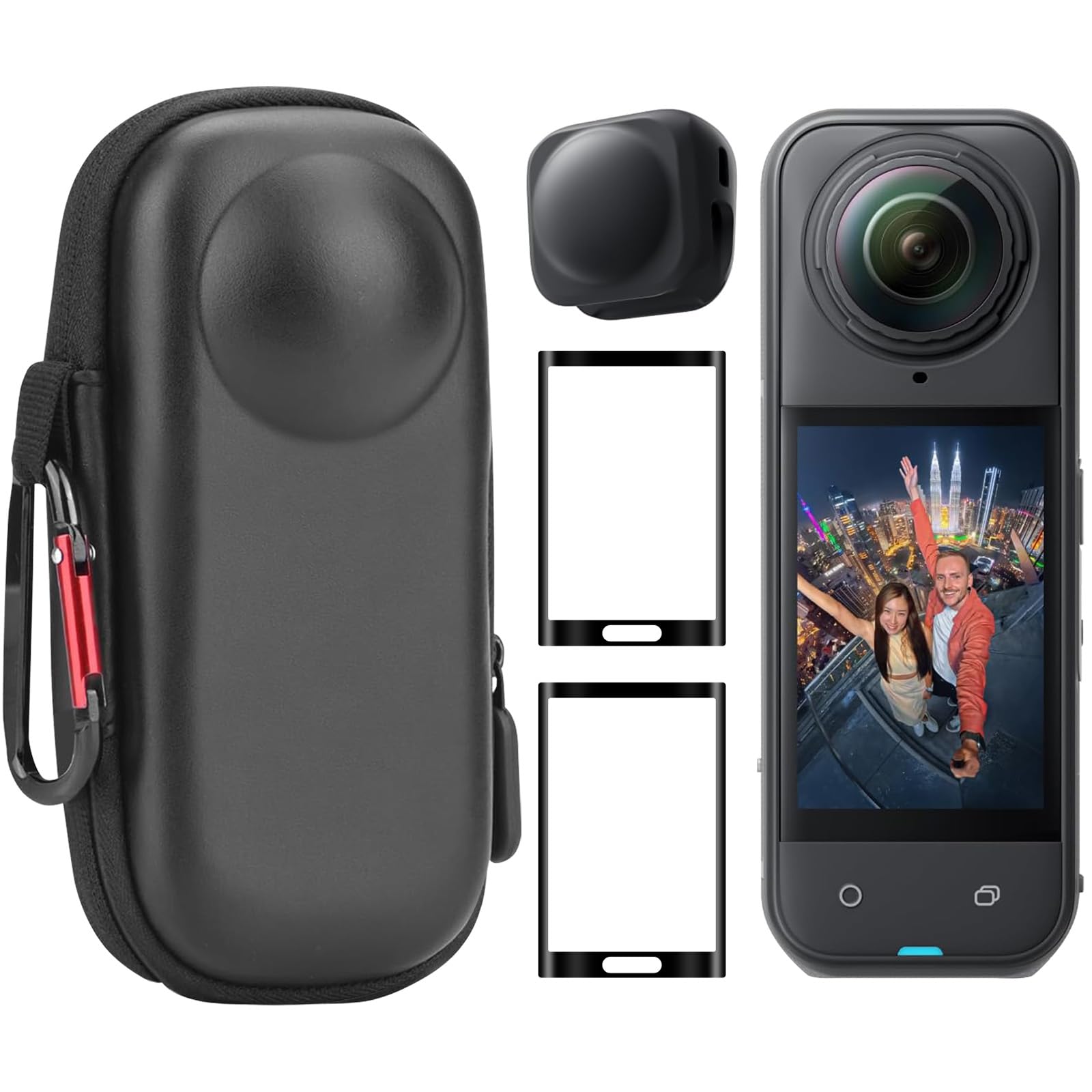 Semaiki Accesorios Insta 360 x 5, funda de transporte pequeña de EVA + tapa de lente de silicona + 2 protectores de pantalla de vi