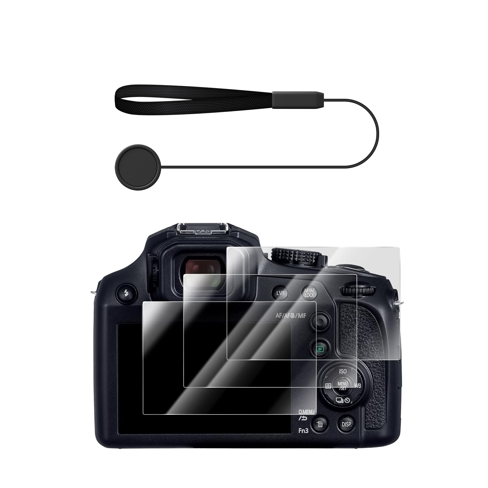 Con 1 protector de tapa de lente, 3 paquetes de protectores de pantalla compatibles con Panasonic Lumix DC-FZ80, FZ80D FZ82 FZ82D