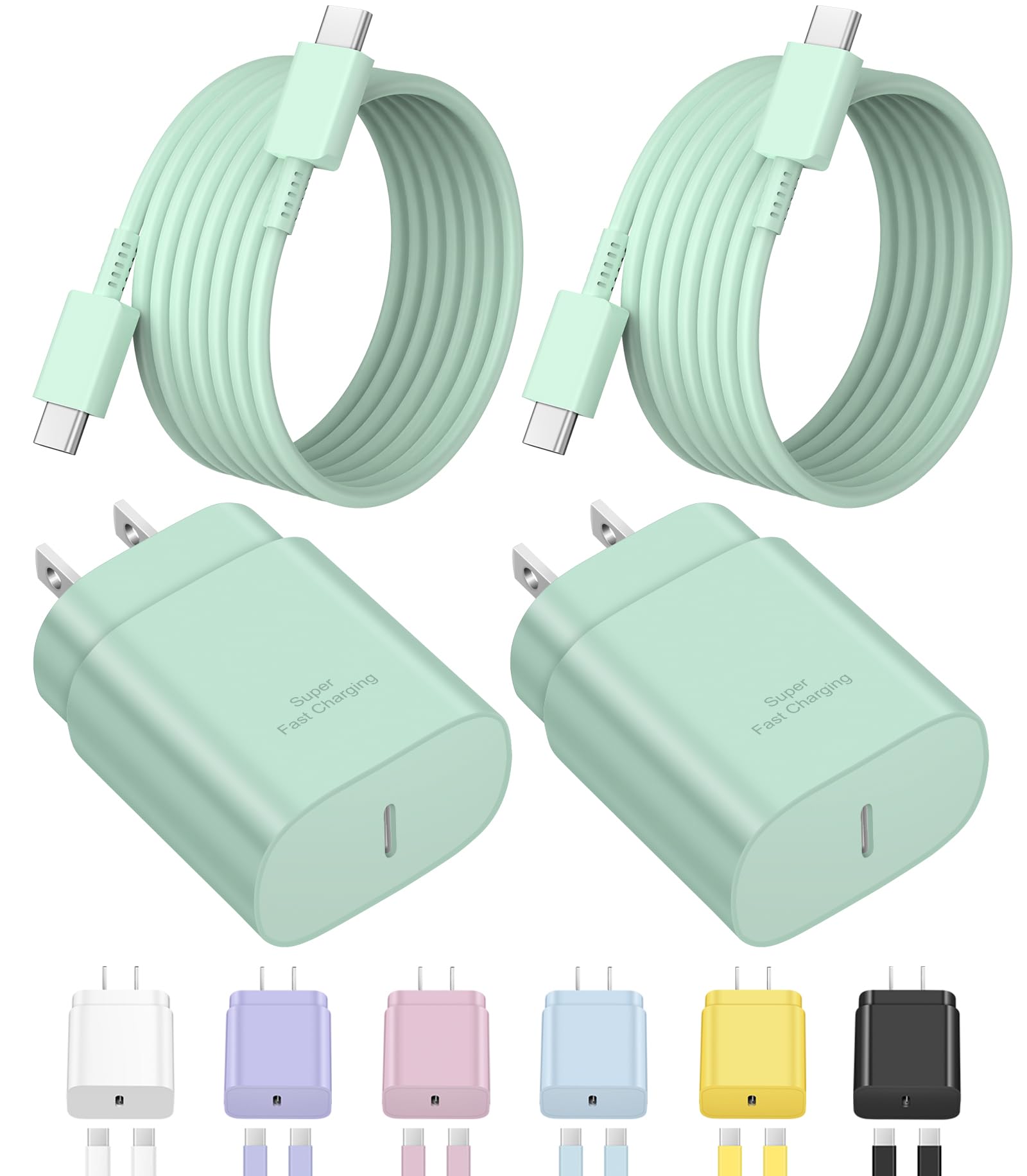 Cargador tipo C de carga rápida para iPhone 16 15, cargadores USB C Samsung Bloque de 25 W, cargadores de pared súper rápidos para