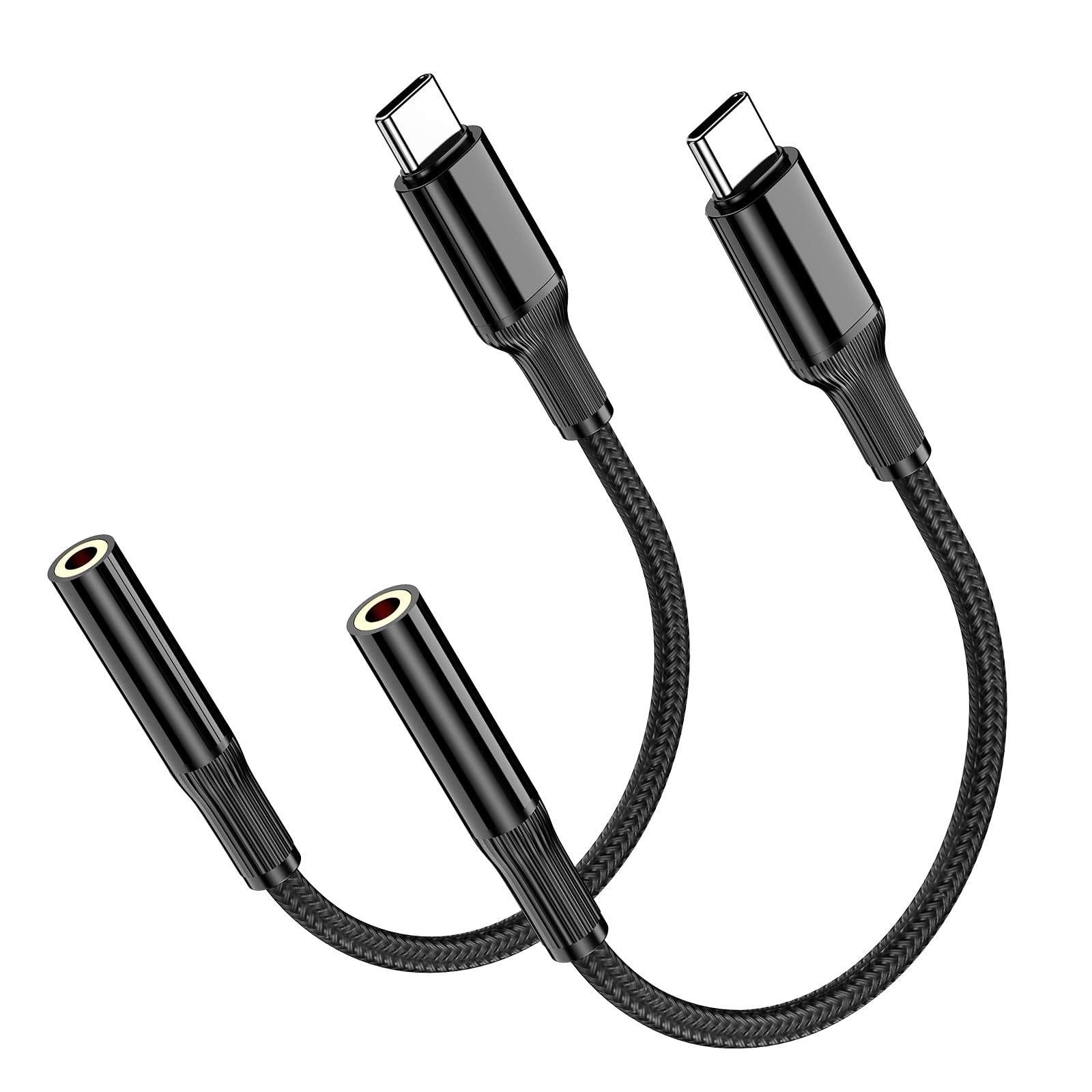 Paquete de 2 cables de audio USB C a 0.138 in, adaptador macho a hembra con cable de nailon para Samsung S20 Ultra, adaptador tipo