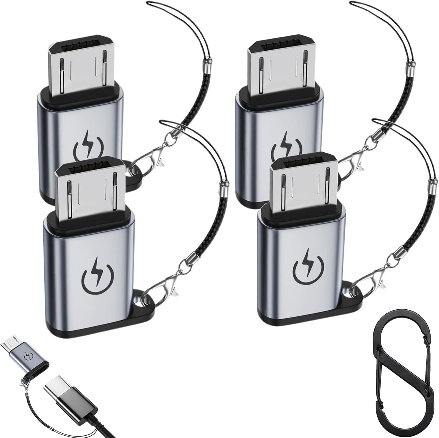 AWINLI – Adaptador USB C a micro (paquete de 4), conector de conversión tipo C hembra a micro USB macho con llavero compatible con
