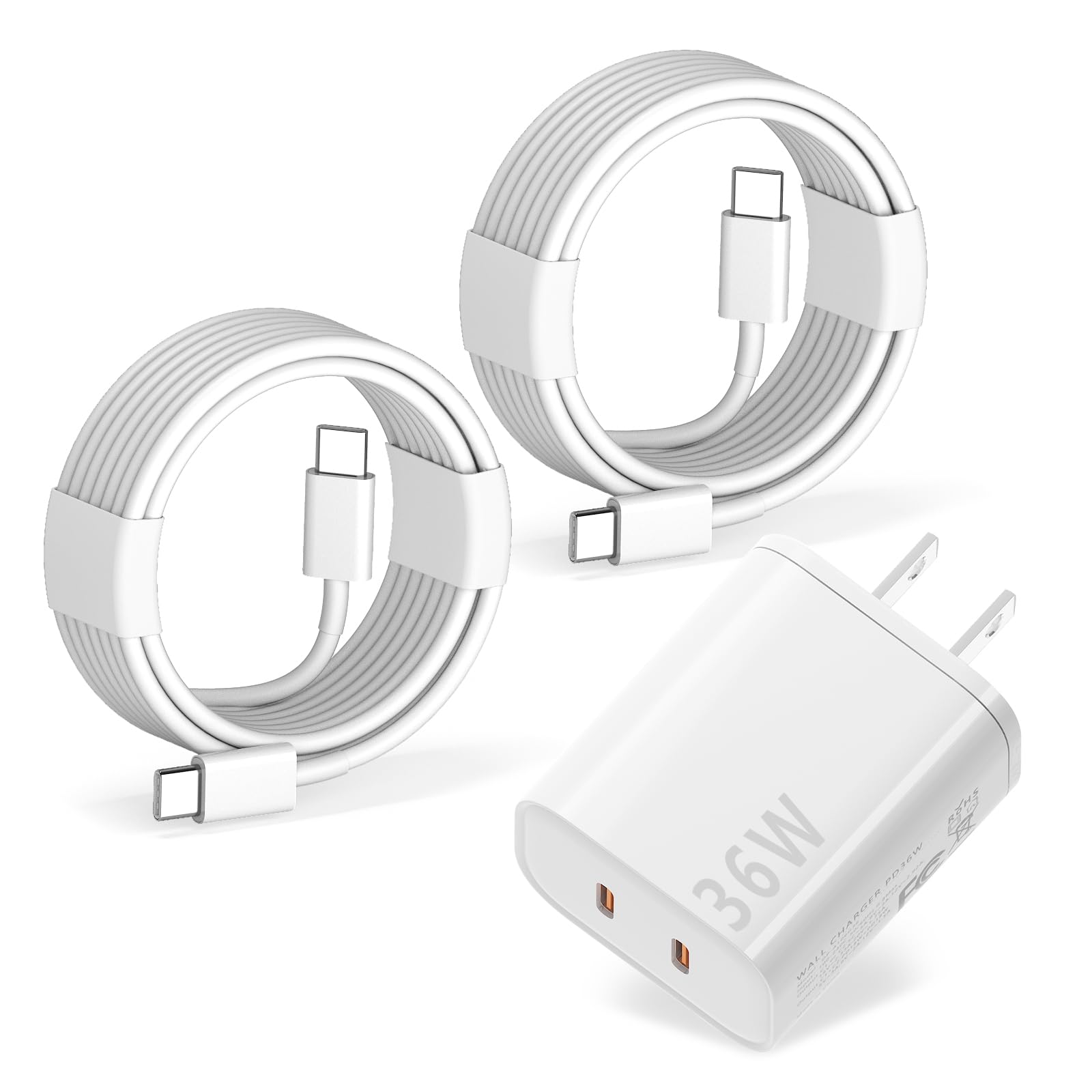 Cargador para iPhone 15 y iPad Pro 13,36 W GaN Dual Port USB C Bloque de cargador rápido con 2 cables USB C a C de 6 pies para iPh