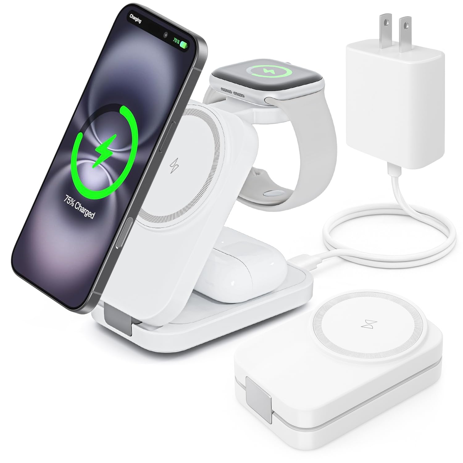 Cargador inalámbrico compatible con Mag-Safe, estación de carga 3 en 1 para iPhone 16/15/14/13/12, Apple Watch, AirPods, carga ráp