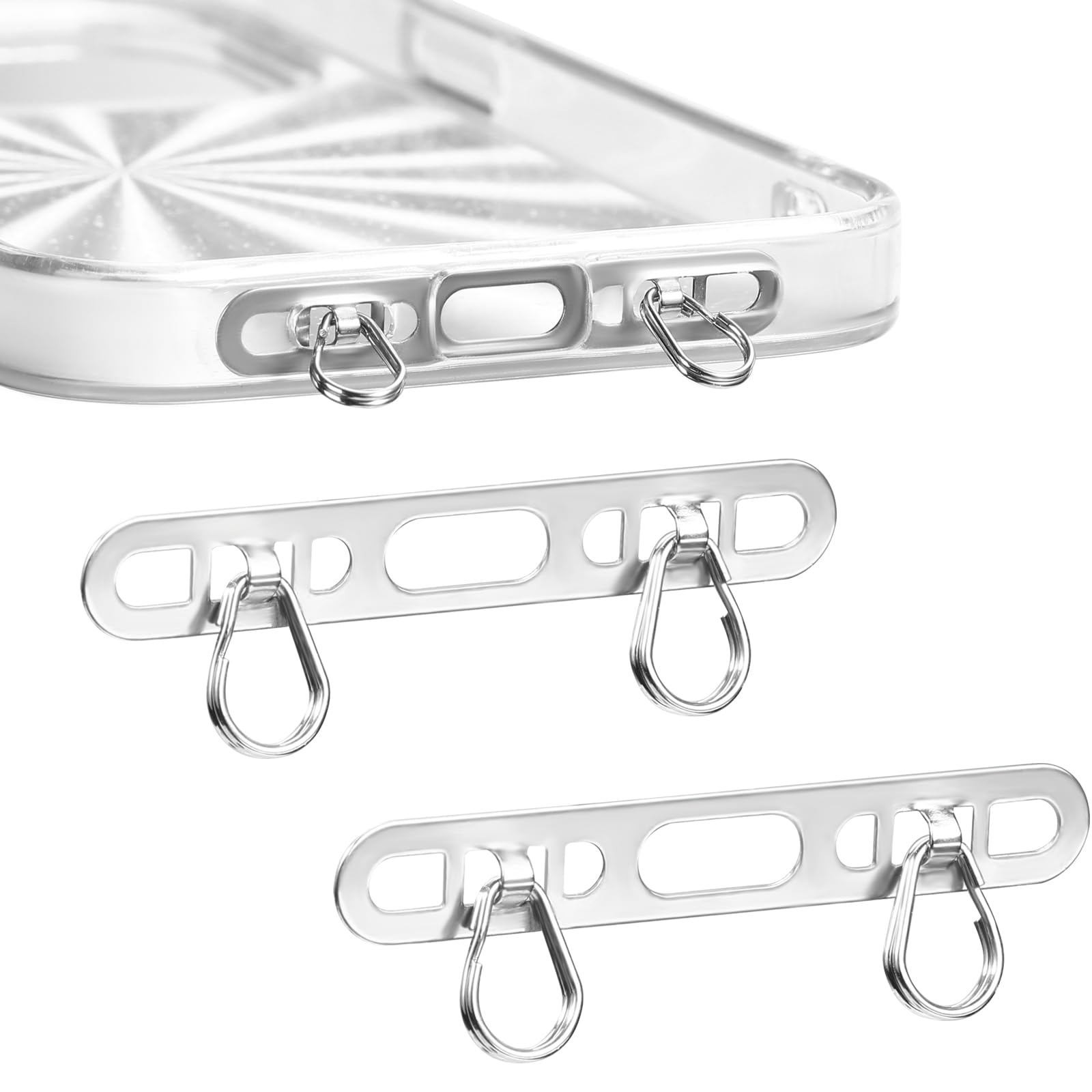 Pestaña de amarre para teléfono celular iPhone Parche de metal con 2 anillos para correa de teléfono celular, plateado