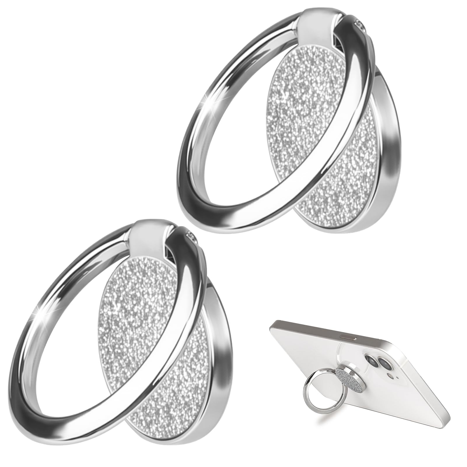2 PCS Glitter Cell Phone Ring Holder, Cell Phone Ring Holder Stand, Finger Ring Kickstand 360° Rotation Sparkle Phone Grip for Car