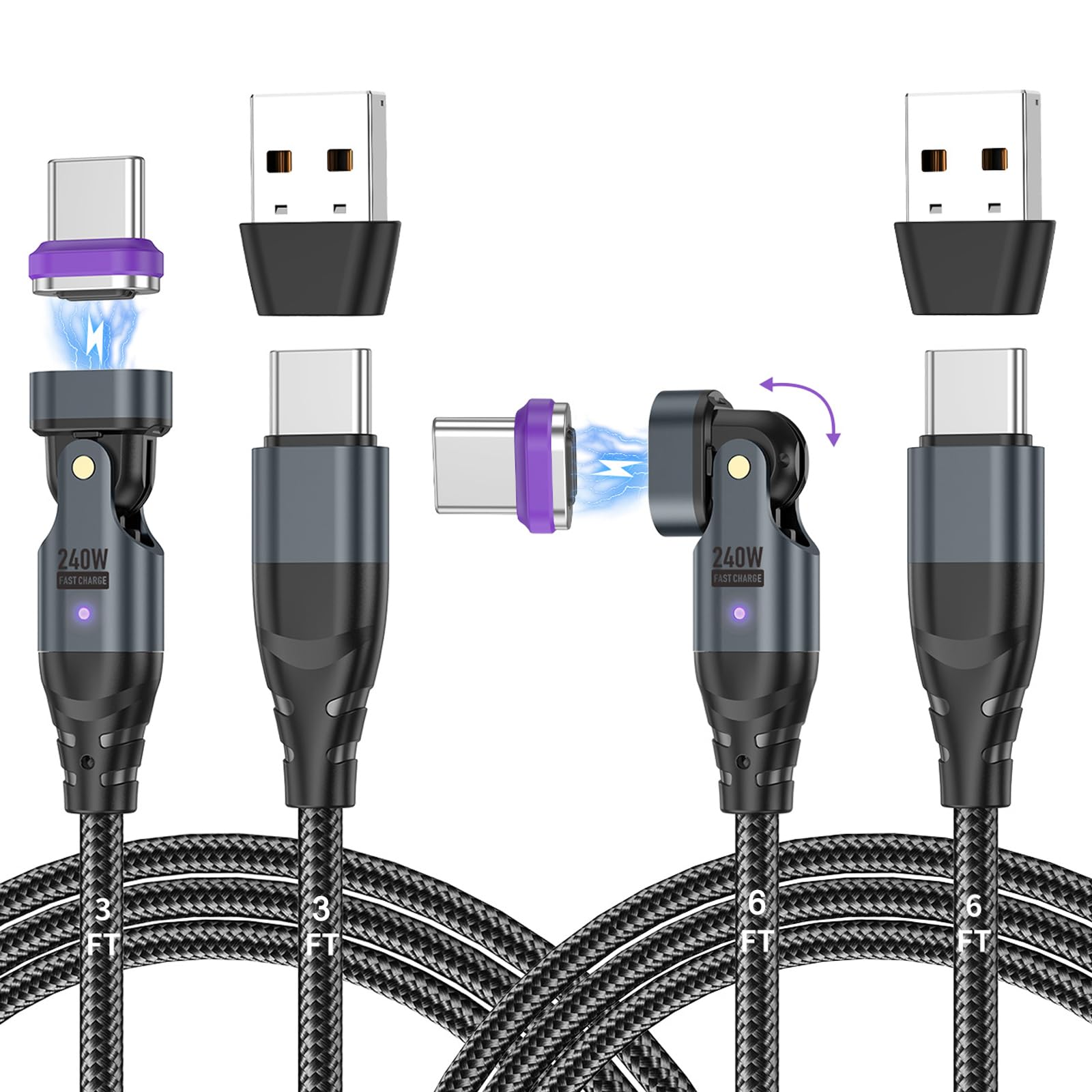 PD – Cable USB C magnético de carga rápida de 240 W, cable de carga de rotación de 90° y 180°, cable magnético tipo C, cable de tr