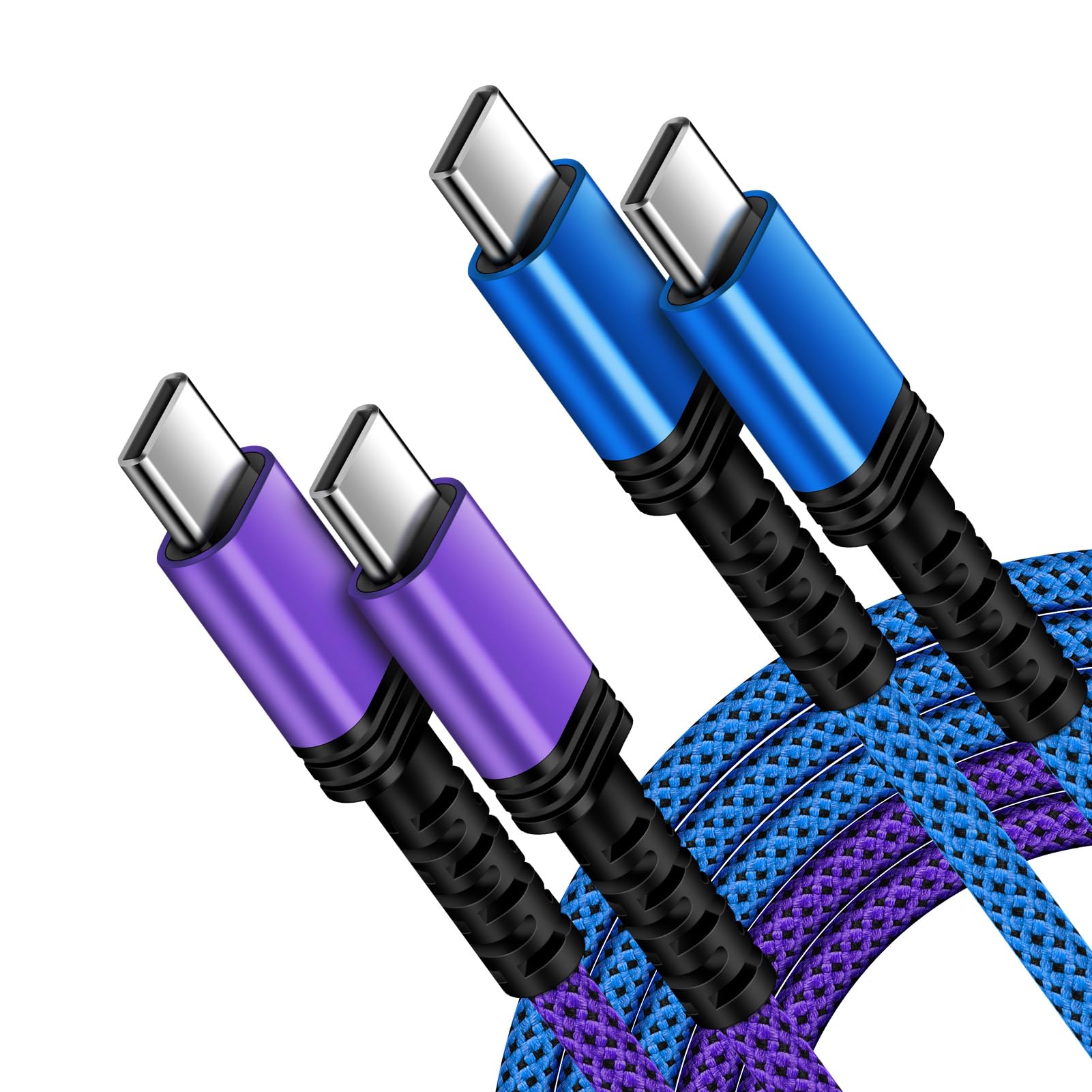 Paquete de 2 cables USB C a USB C de 10 pies de largo de carga rápida de 60 W, cable de carga PD tipo C para Samsung Galaxy S25 S2
