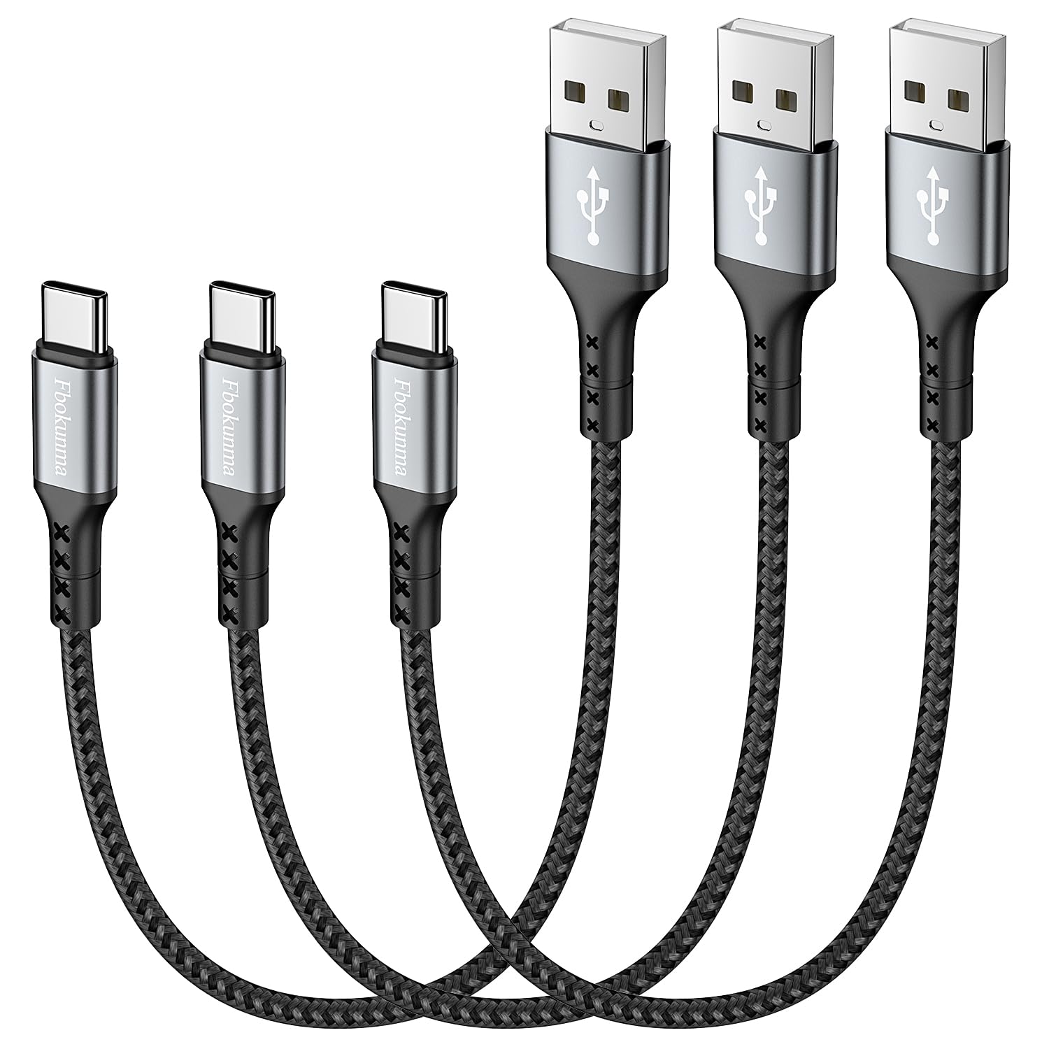 Cable USB C corto de 1 pie, paquete de 3 unidades, 12 pulgadas, 3A USB a USB C, cable trenzado tipo C para Samsung Galaxy S10 S9 S