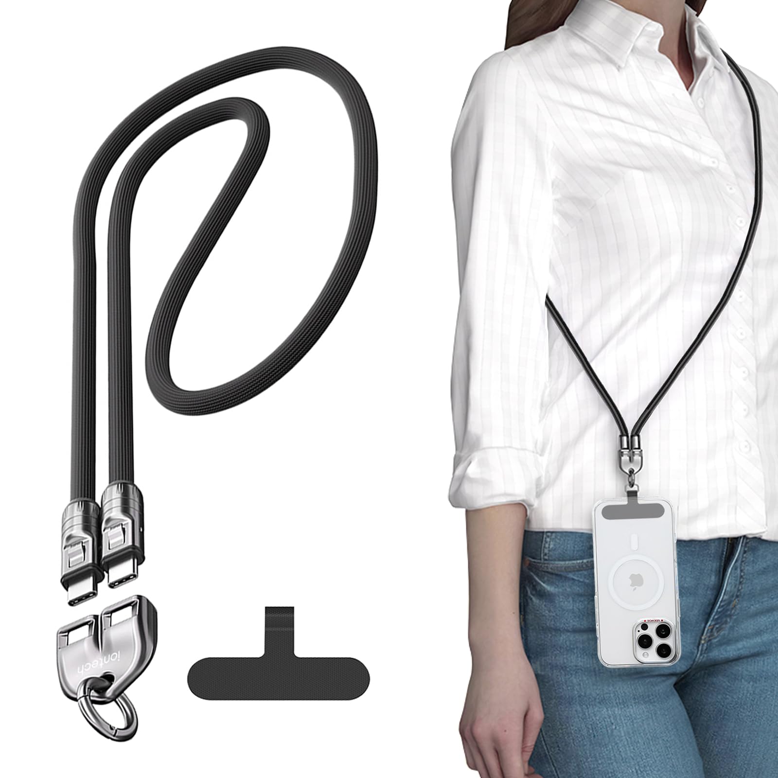 iontech Cordón para teléfono integrado de 240 W USB-C a USB-C de carga rápida, 0.276 in de grosor para teléfono celular, parche mu