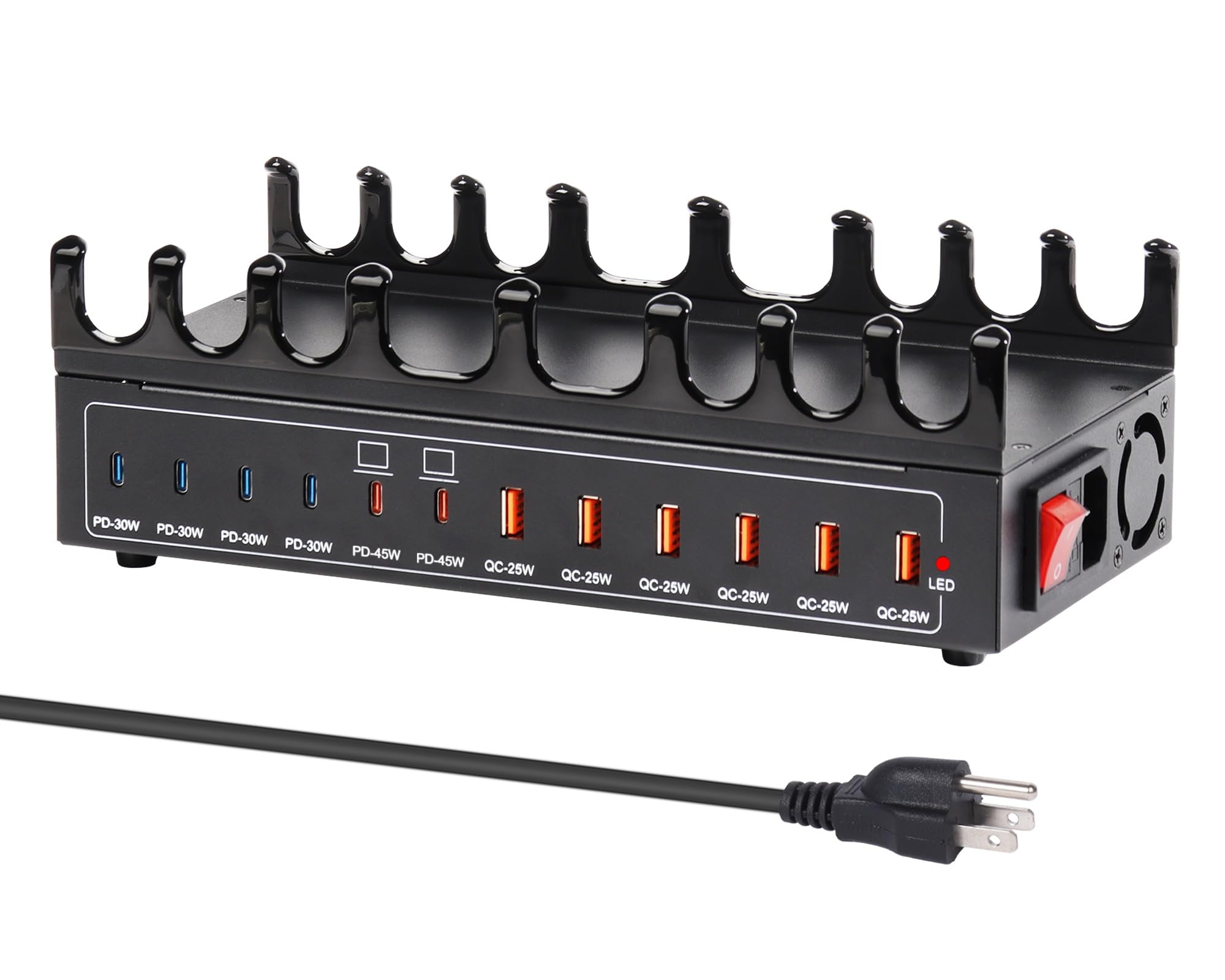 Estación de carga de 360 W para múltiples dispositivos, estación de carga USB C de 12 puertos con doble puerto PD PPS de 45 W, bas