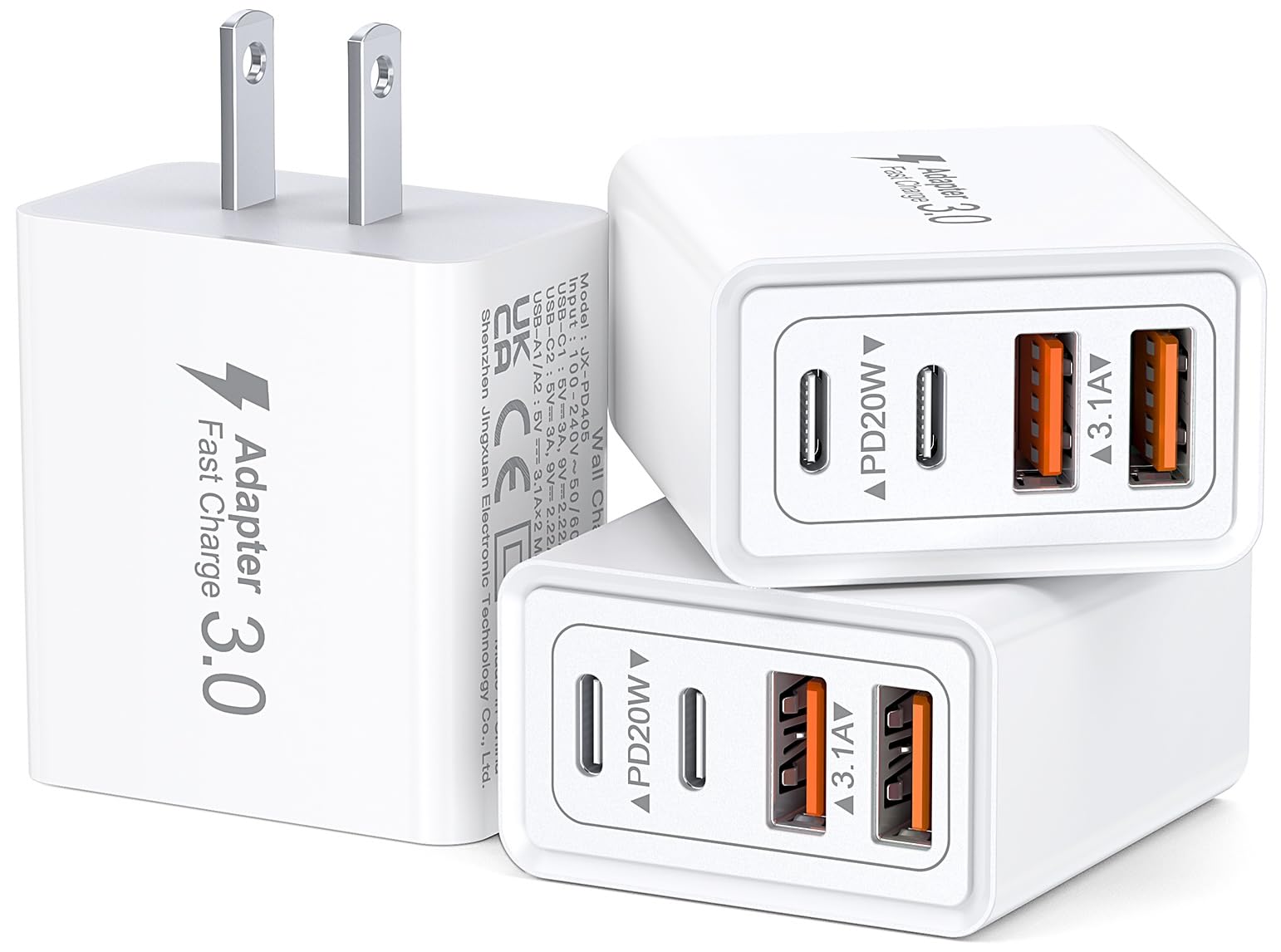 Bloque de cargador USB C, paquete de 3 enchufes de carga rápida USB C de 20 W, adaptador de bloque de carga rápida + USB A enchufe