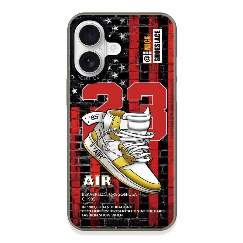 Funda para iPhone 16, diseño de bandera americana y marca de Estados Unidos, Cool Legend Basketball número 23, tenis deportivos vi