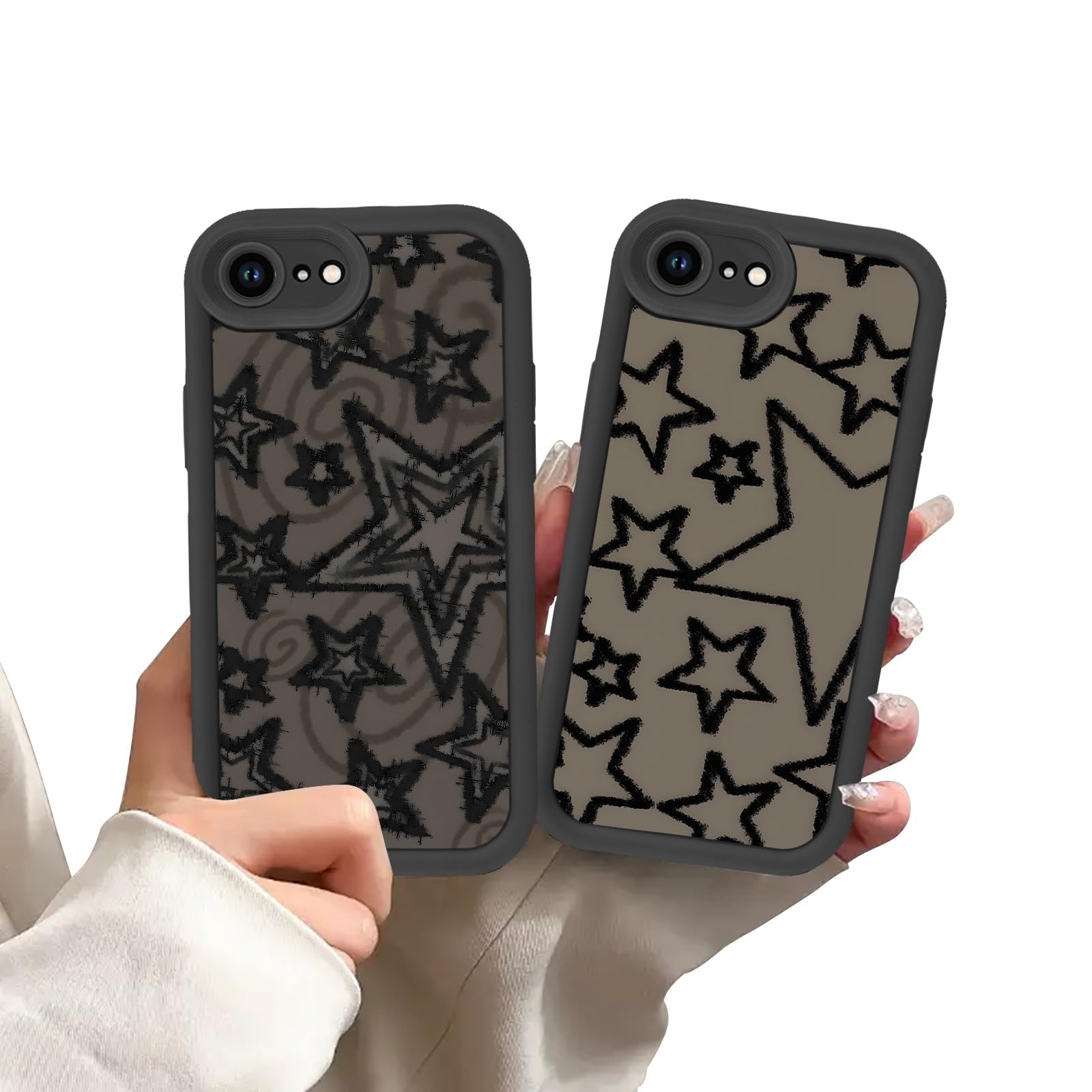 Paquete de 2 fundas de teléfono con diseño de estrellas negras para iPhone 16E, diseño de estrellas negras para mujeres y niñas, c