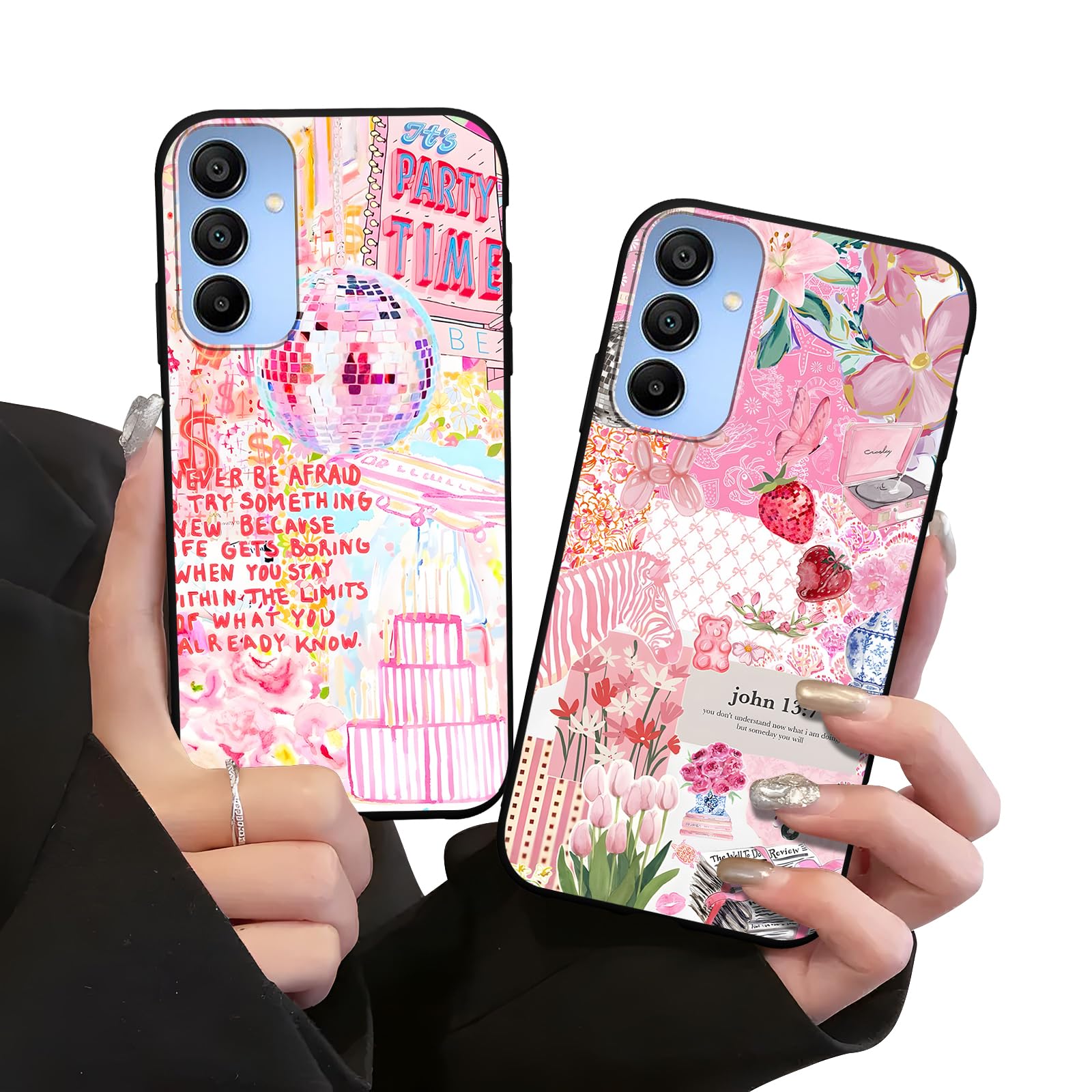 Paquete de 2 fundas de teléfono con collage preppy para Samsung Galaxy A15 5G de 6.5 pulgadas, bonitas fundas florales estéticas c