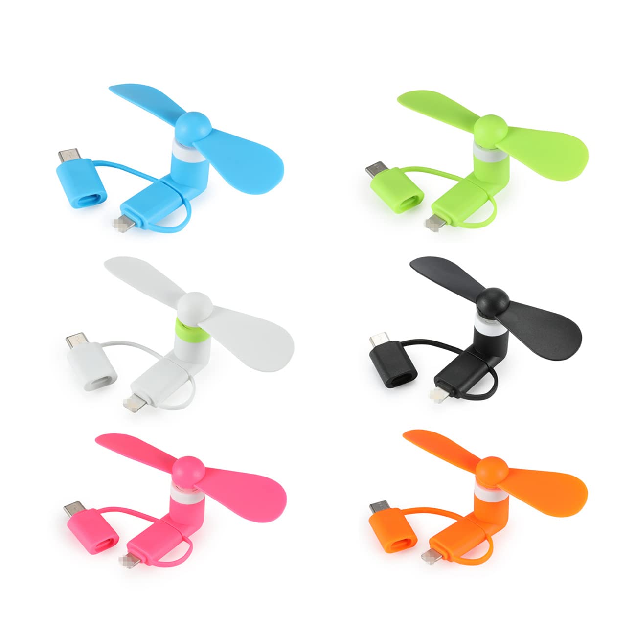 Ventilador de teléfono celular 2 en 1, paquete de 6, compatible con iPhone, iPad, teléfono inteligente Android, tableta compatible