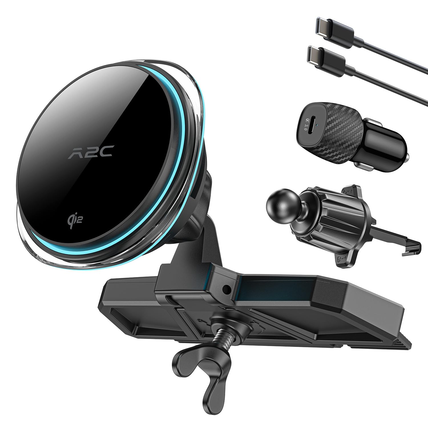 A2C Qi2 – Cargador de coche inalámbrico de 15 W, soporte de CD para MagSafe, cargador inalámbrico magnético para ventilación de co