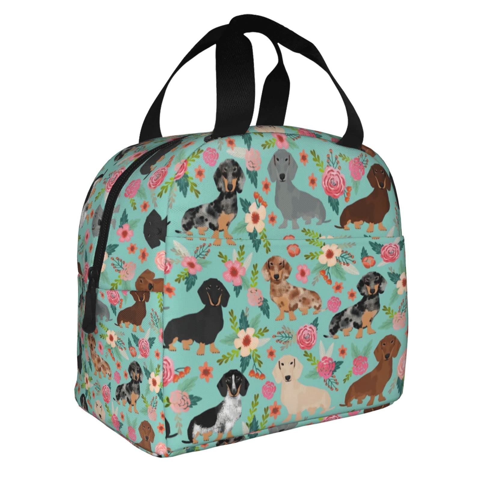 VOOHDDY Bolsa de almuerzo con aislamiento térmico para perros Boston Terrier con diseño de flores florales vintage para hombres y
