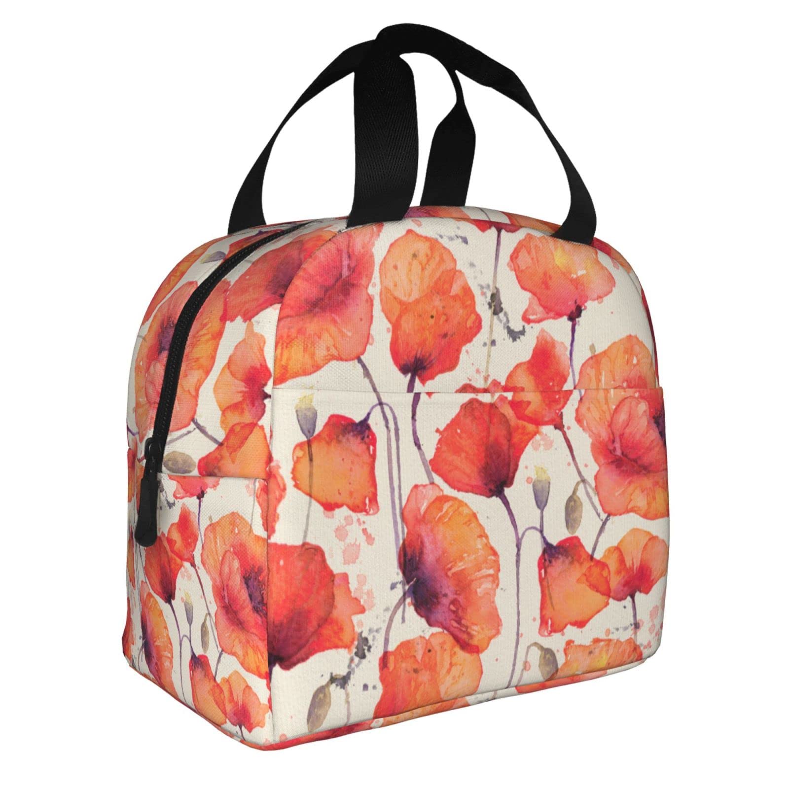 VOOHDDY Bolsa de almuerzo con aislamiento de amapolas vintage de acuarela roja para mujeres, contenedor reutilizable, impermeable,