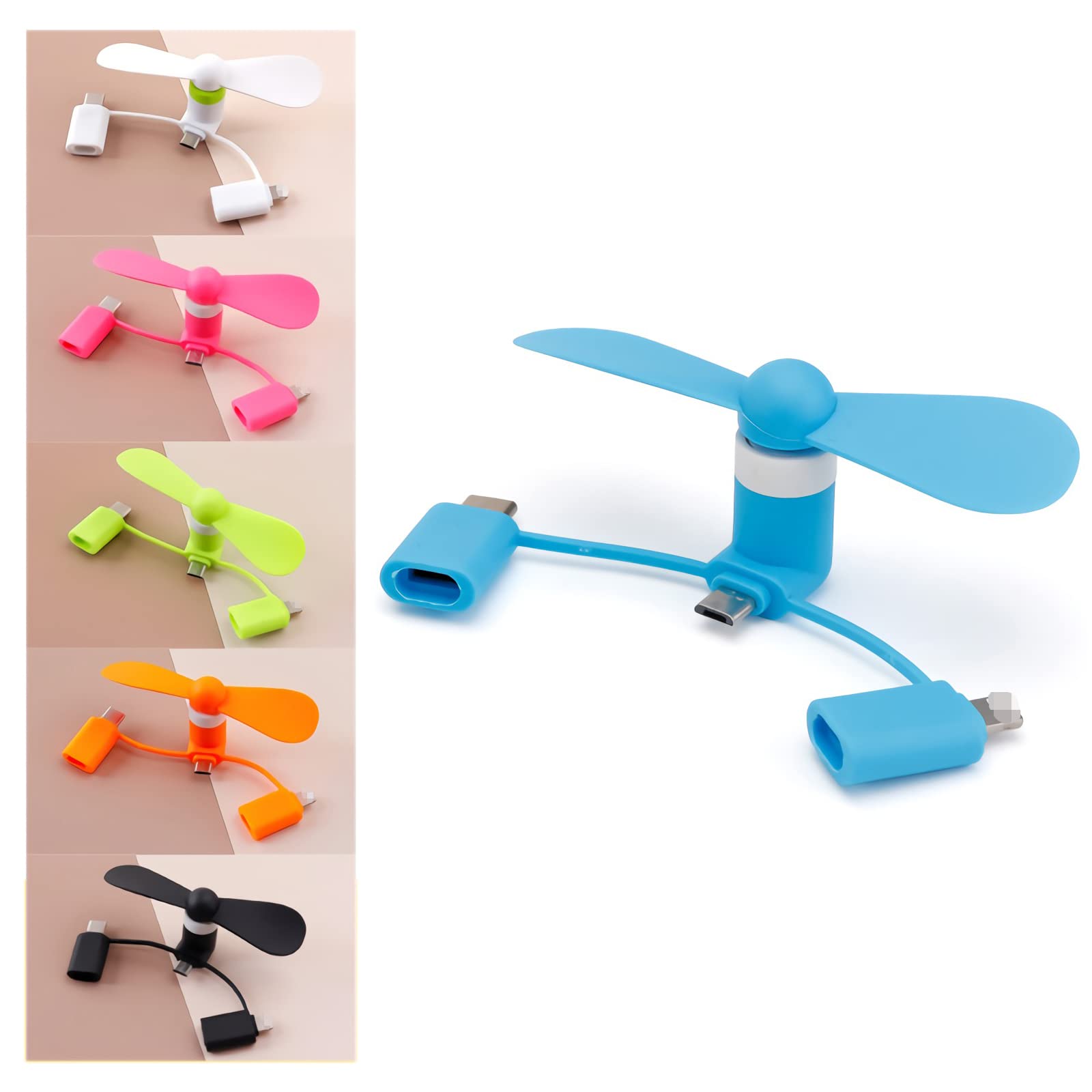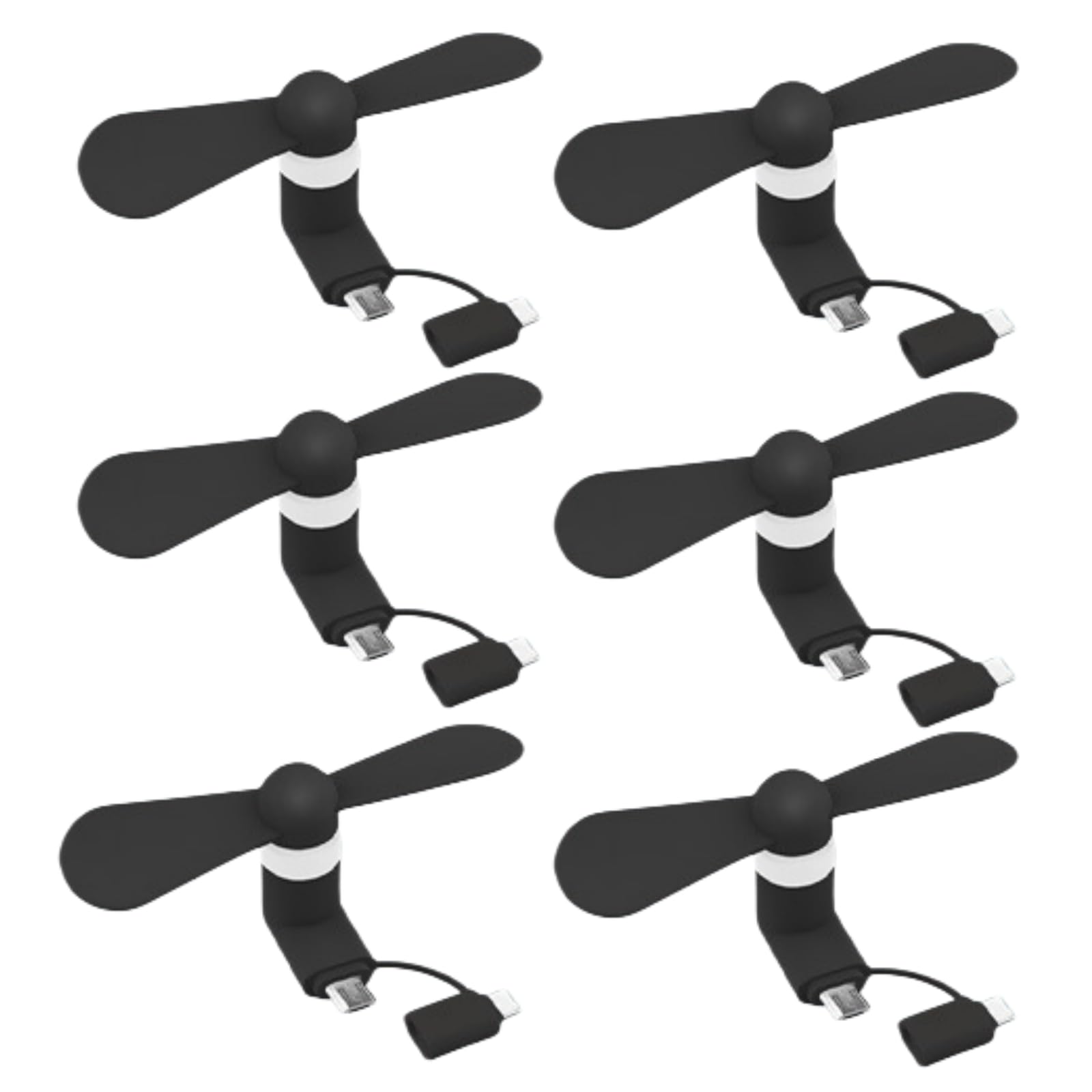 Ventilador de teléfono portátil, mini ventilador de refrigeración 2 en 1 para iPhone iPad, paquete de 6, compatible con micro USB