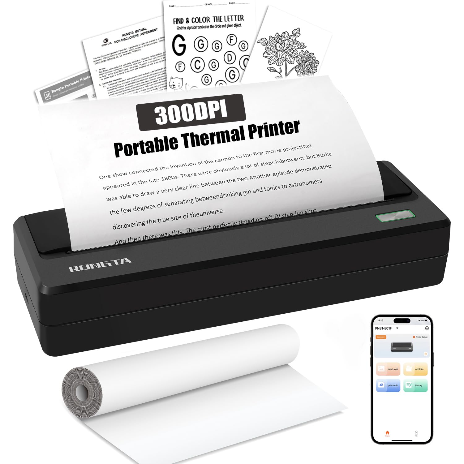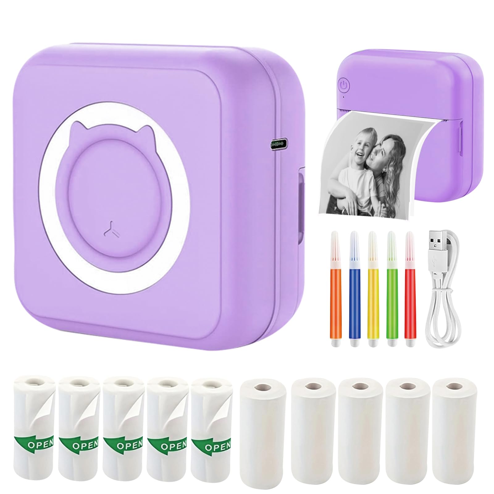 Mini impresora, con 11 rollos de papel de impresión, impresora térmica portátil sin tinta, compatible con iOS y Android, para nota