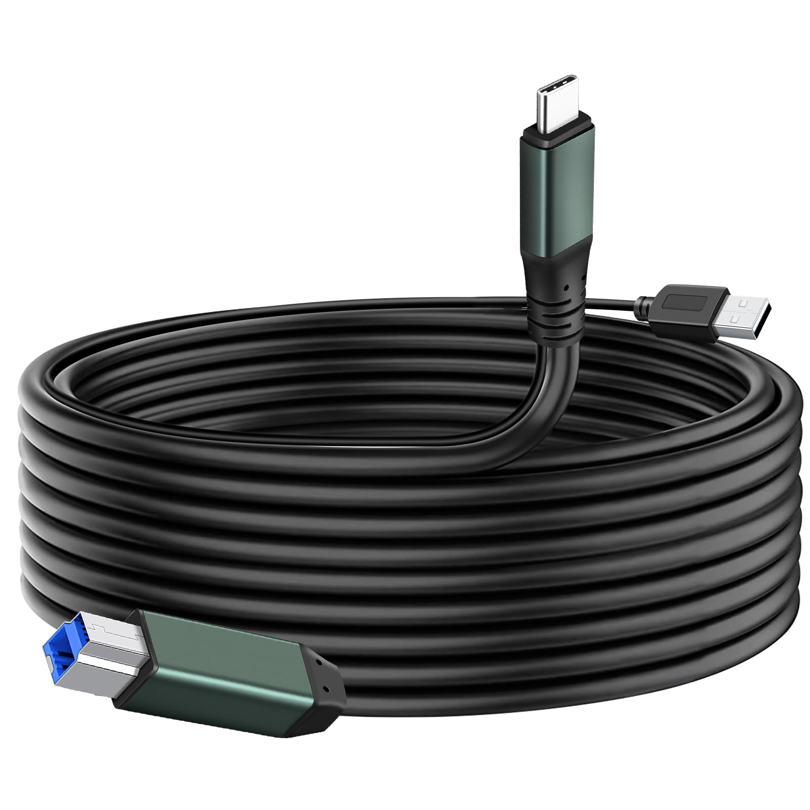 Cable de conexión USB tipo C a USB tipo B 3.0 de 20 pies compatible con MacBook Pro, HP, Dymo, Epson, Brother, Xerox, Lexmark, Can