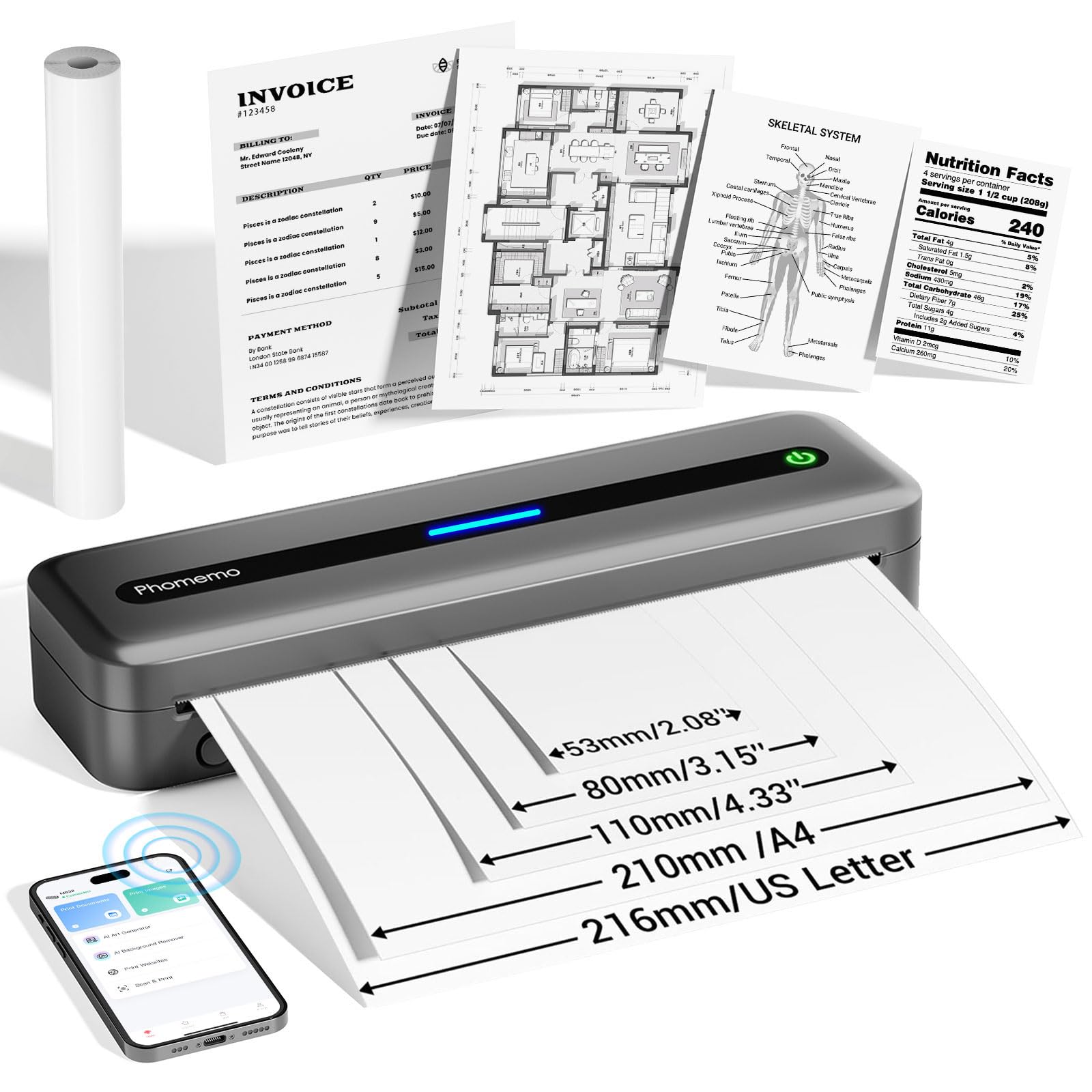 Phomemo Impresoras portátiles inalámbricas M832 para viajes, impresora térmica sin tinta Bluetooth, compatible con papel térmico d