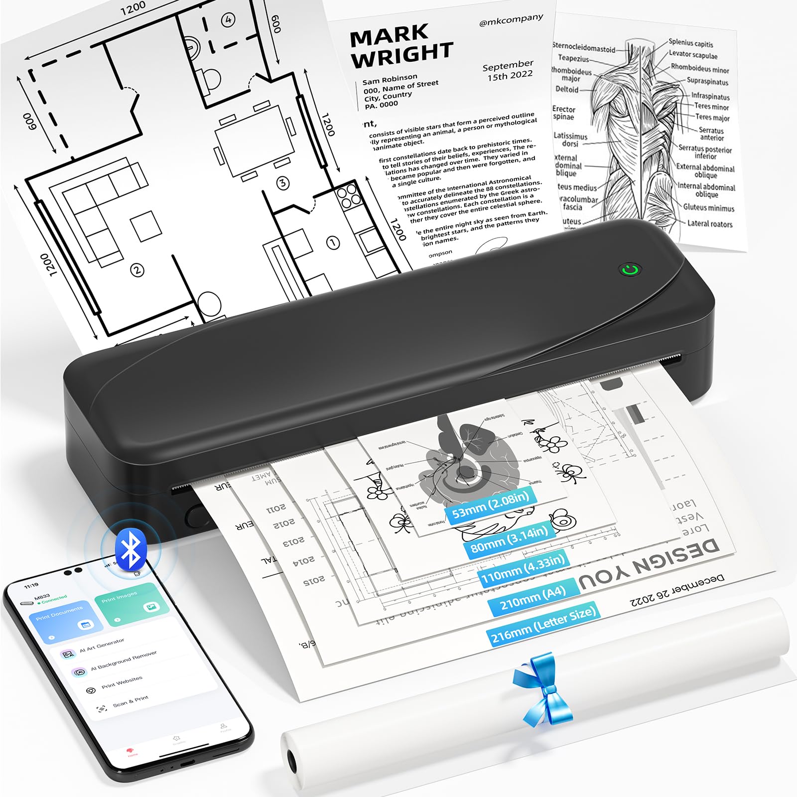 Memoking Impresoras portátiles inalámbricas para viajes, pequeña impresora térmica de 8.5 x 11 pulgadas, papel de carta para teléf