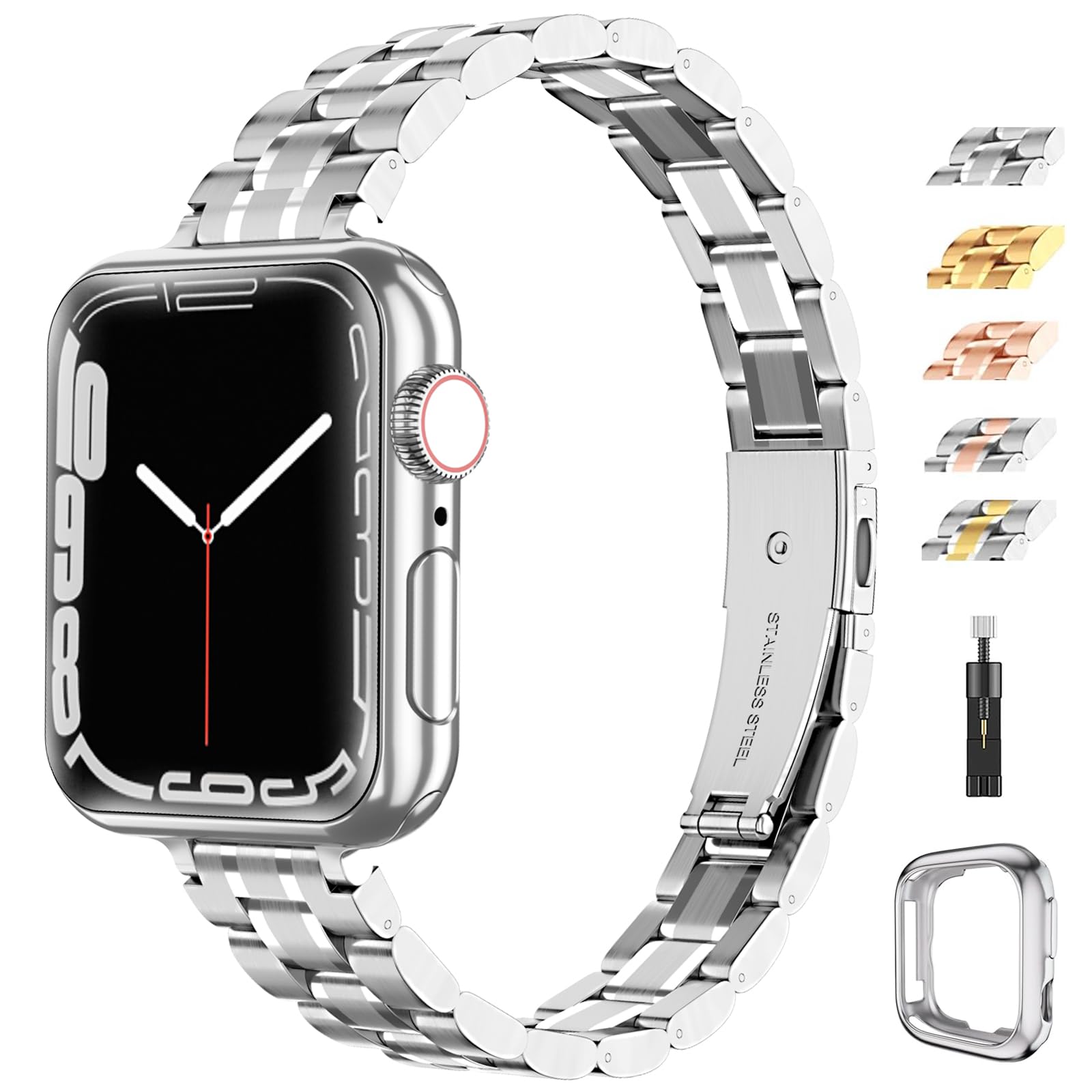 chuangshiji Compatible con Apple Watch Band de 1.496 in 1.575 in 1.614 in 1.654 in 1.732 in 1.772 in, correa de metal de acero ino