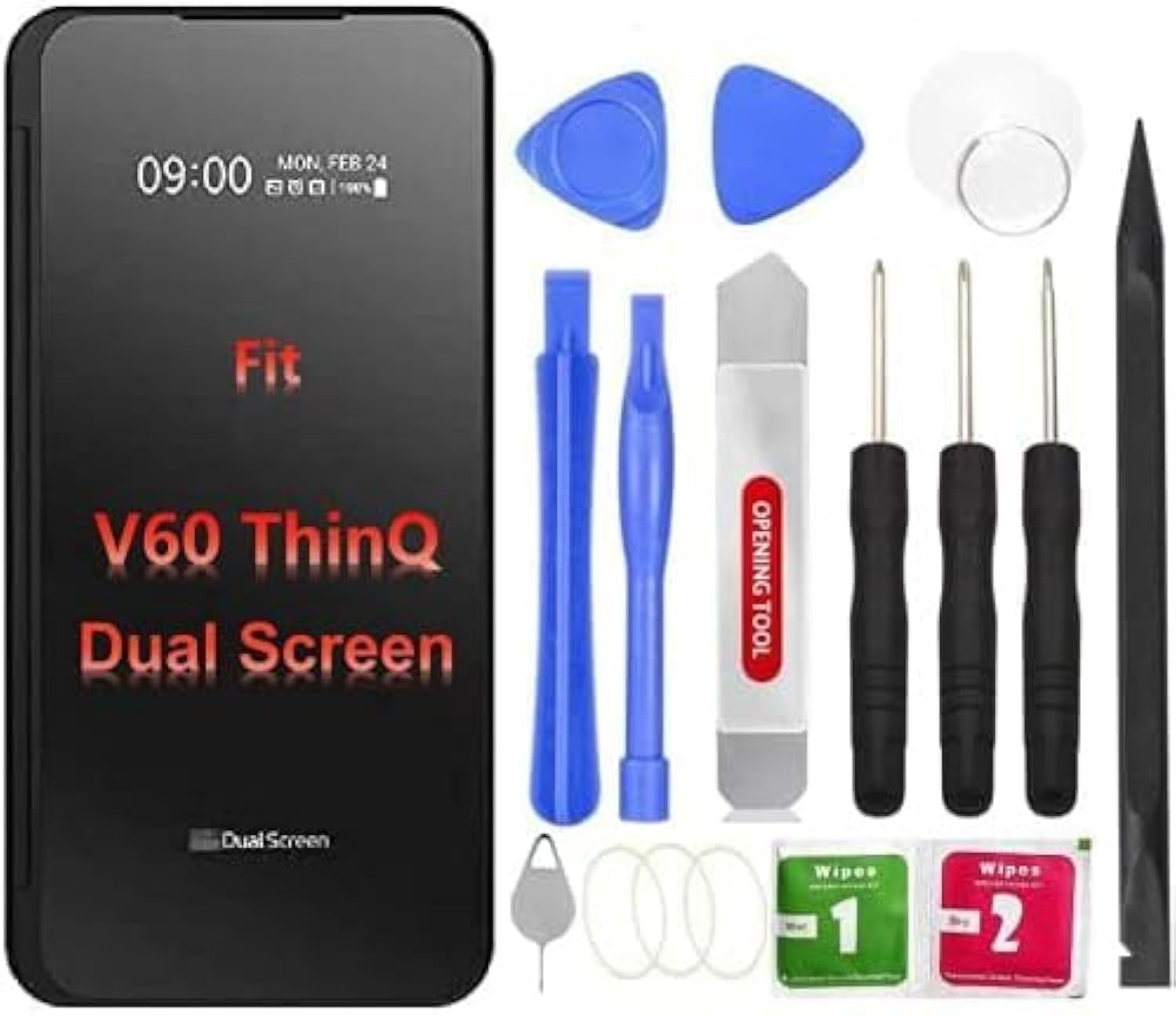 teamplayer V60 ThinQ Reemplazo de vidrio frontal con cinta preinstalada, vidrio de doble pantalla de repuesto OEM, incluye herrami