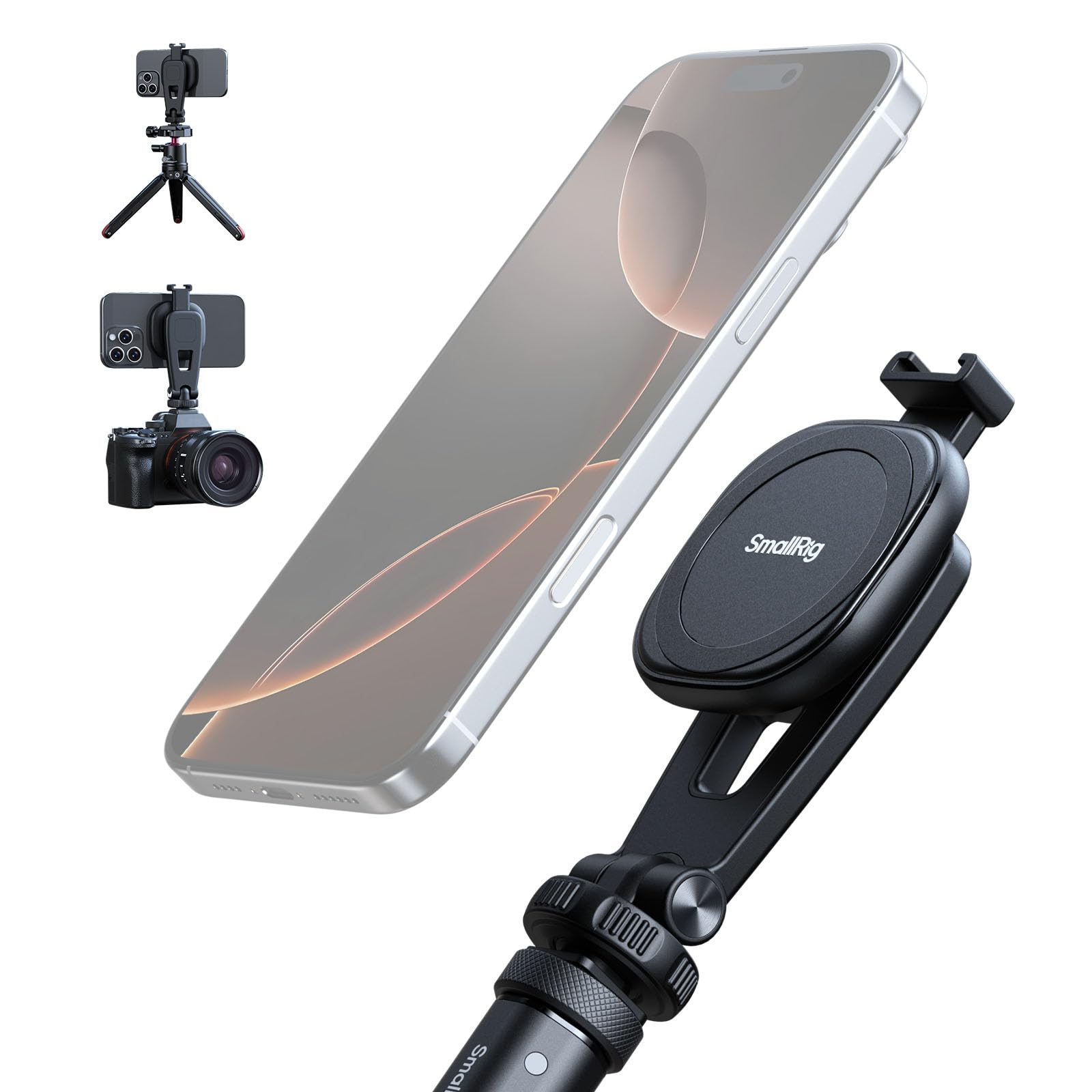 SMALLRIG AC-10 Abrazadera magnética para teléfono, con soporte de zapata fría y orificio roscado de 1/4″-20, para iPhone 16/15/14/