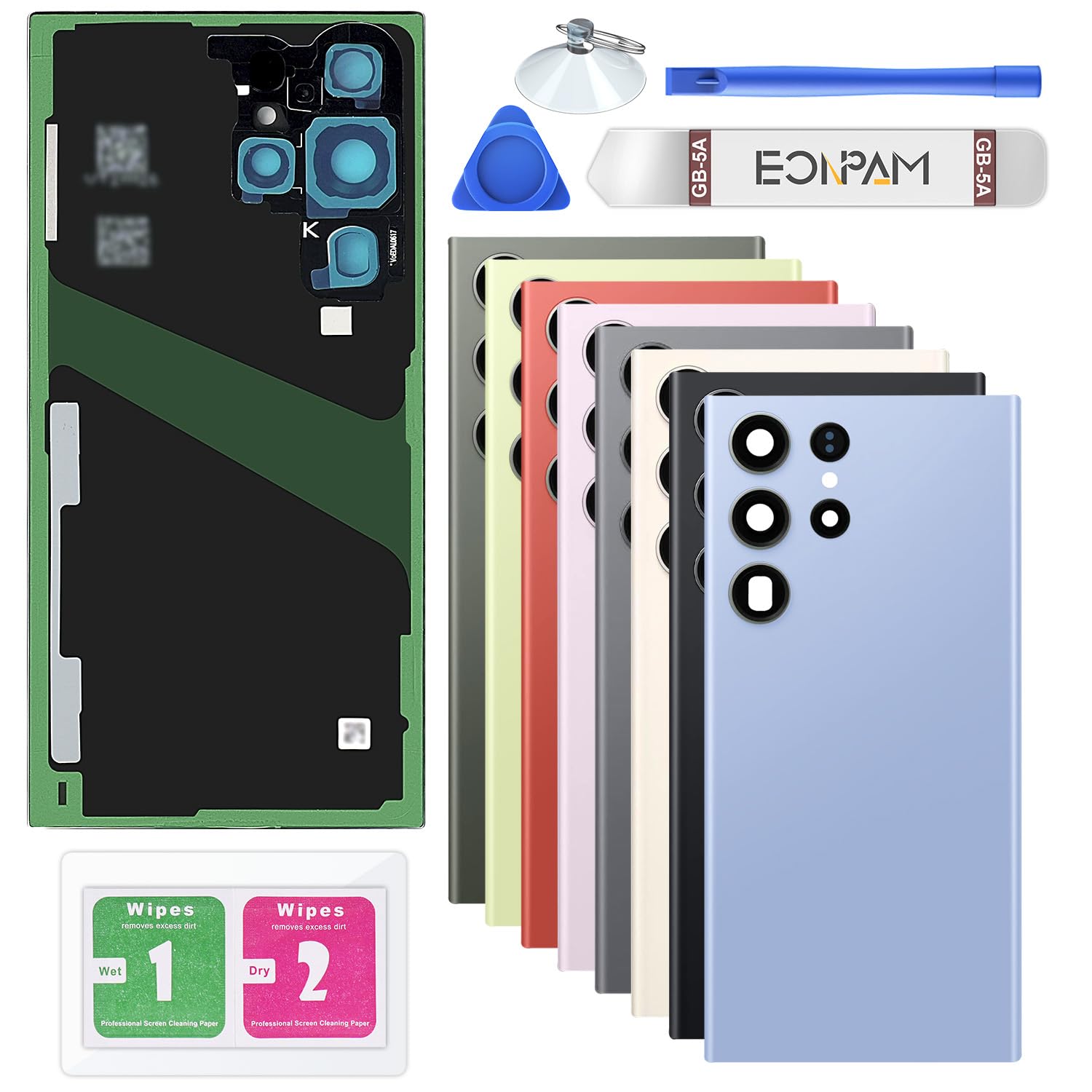 Reemplazo de cristal trasero para Samsung Galaxy S23 Ultra SM-S918 Carcasa trasera con lente de cámara + kit de herramientas de re