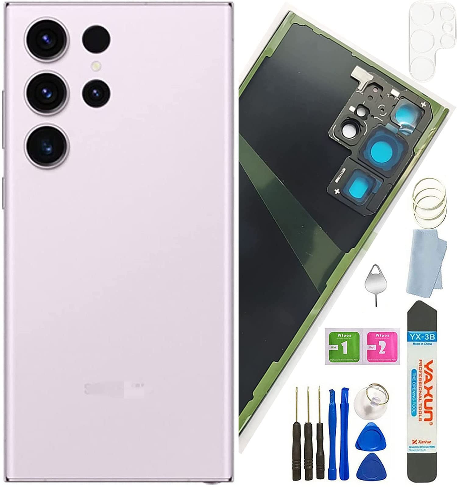 XBC-TECH Galaxy S23 Ultra – Carcasa trasera de repuesto para Samsung Galaxy S23 Ultra con cinta preinstalada y lente de cámara + h