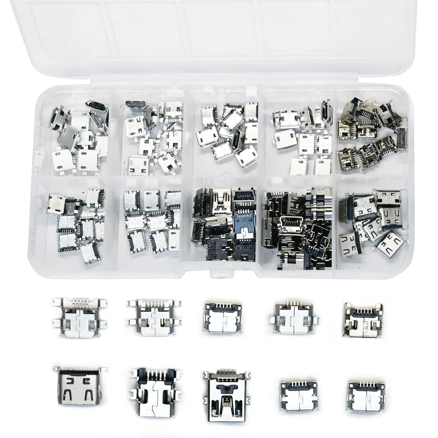 100 piezas de 10 tipos de conectores hembra micro USB, puertos micro USB de 5 pines para reparación de teléfonos, soldadura, proye