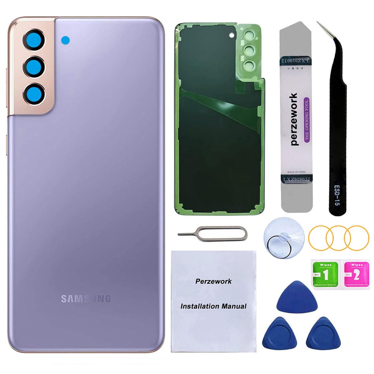 Reemplazo de cristal trasero trasero para Samsung Galaxy S21 Plus 6.7 pulgadas 5G con kit de herramientas de reparación y mamual (