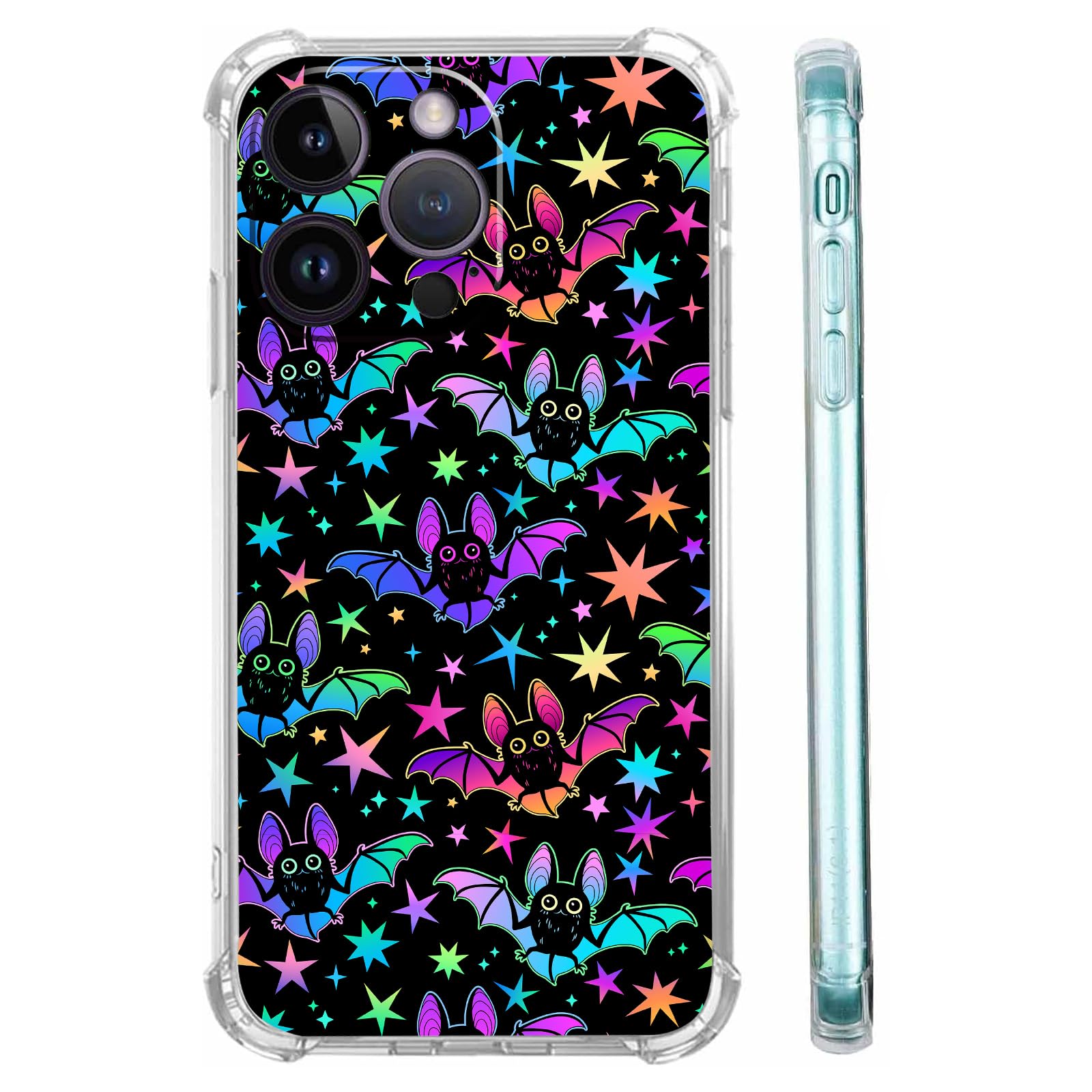 Funda de teléfono de murciélago colorida compatible con iPhone 15 Pro Max, compatible con iPhone 15 Pro Max, funda protectora de r
