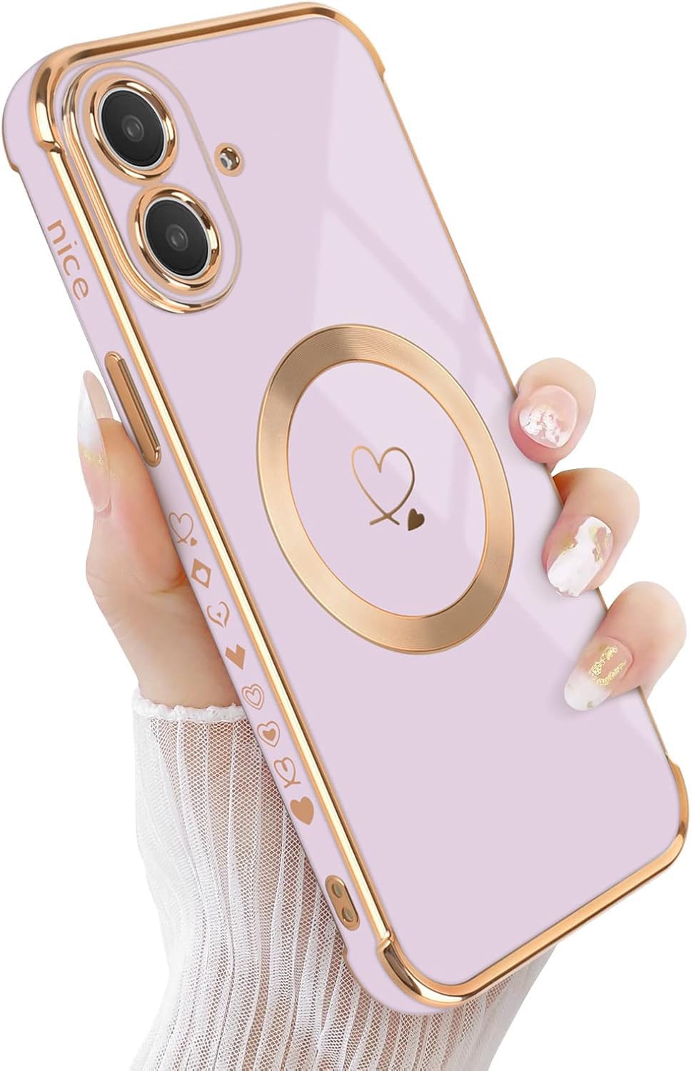 Funda para iPhone 16 Plus, compatible con MagSafe Plating Love Heart Case con protección para lente de cámara, parachoques trasero