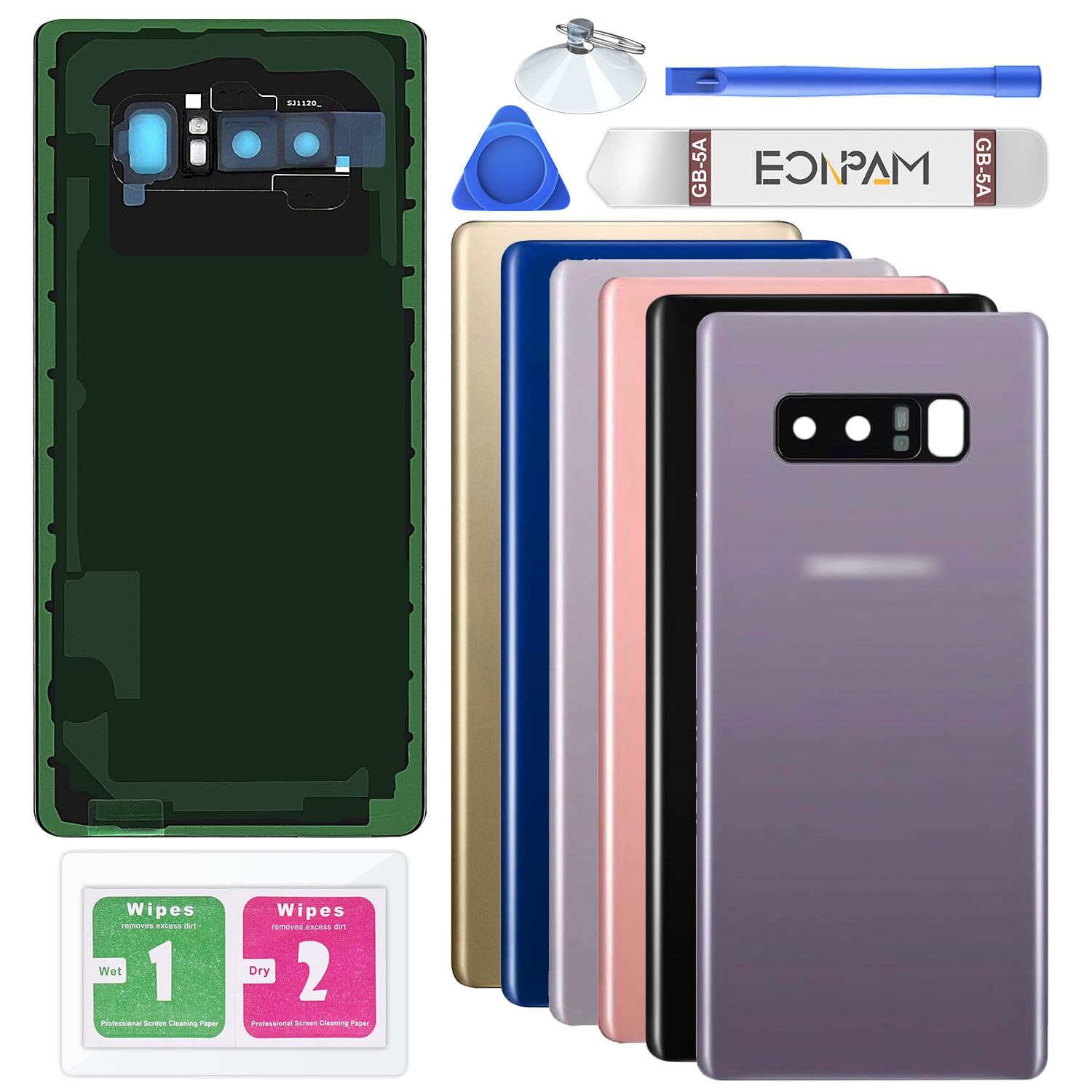 Reemplazo de cristal trasero para Samsung Galaxy Note 8 SM-N950 Carcasa trasera con lente de cámara + kit de herramientas de repar