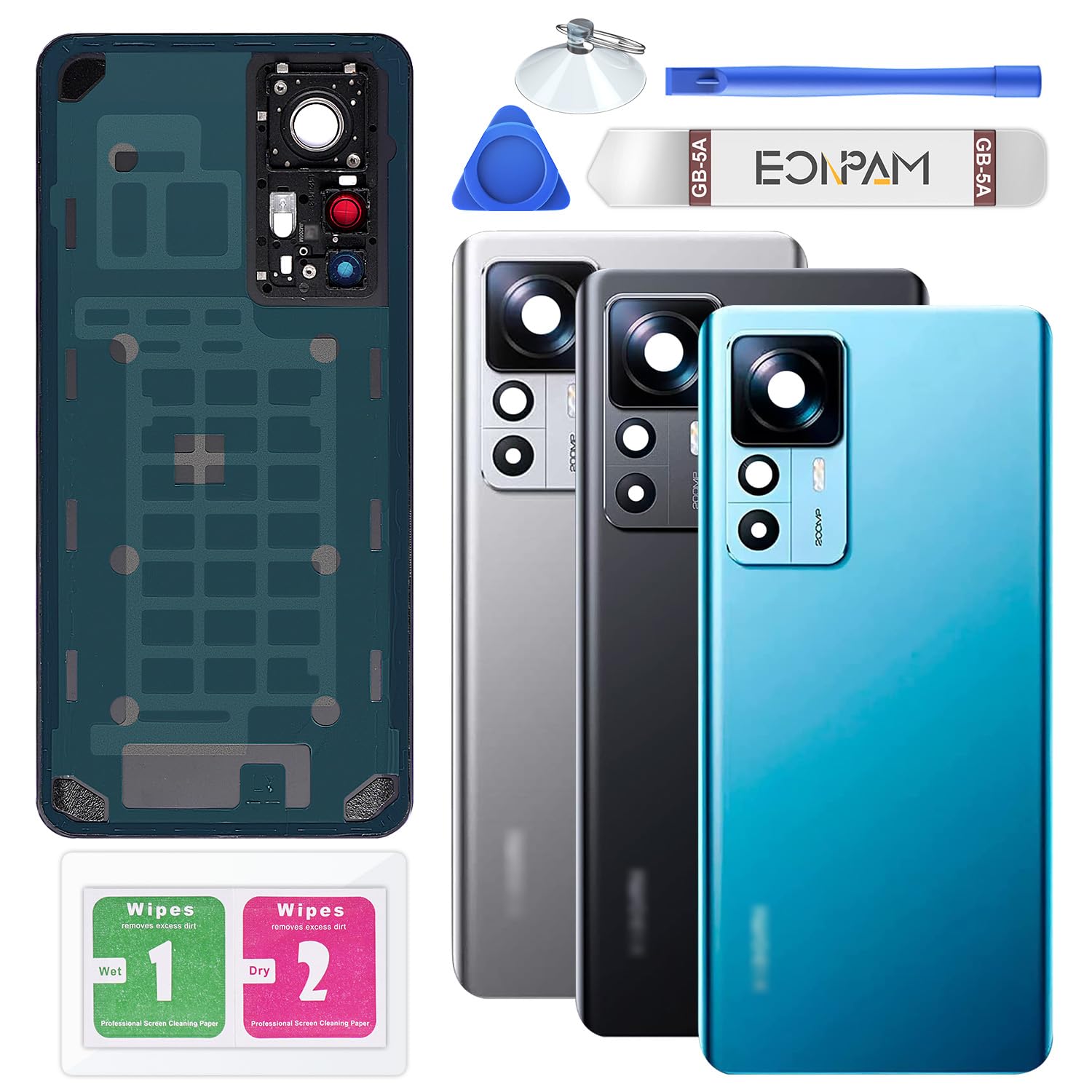 Reemplazo de cristal trasero para Xiaomi 12T Pro Carcasa trasera con lente de cámara + kit de herramientas de reparación Vidrio tr