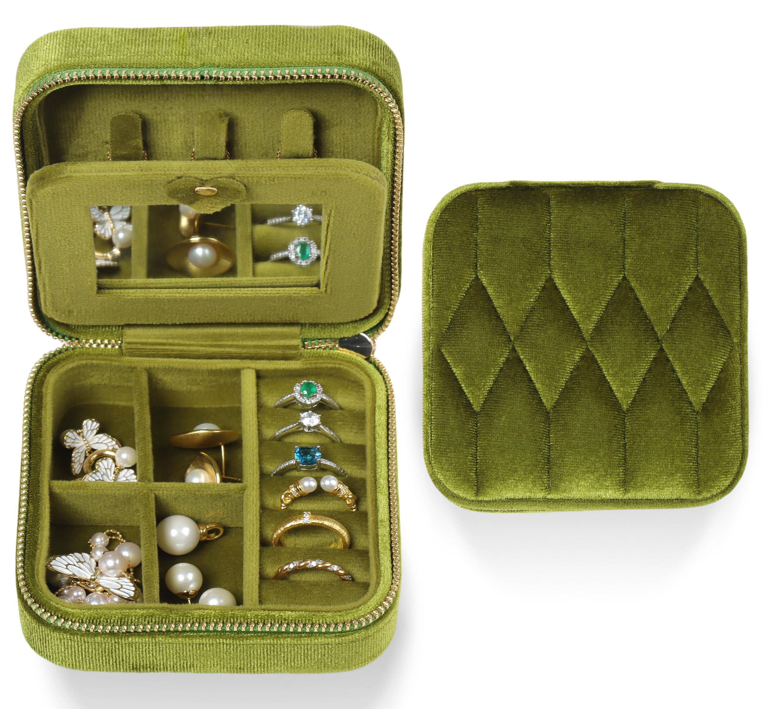 Joyero de terciopelo – Organizador de joyas de viaje con espejo, compartimentos ajustables para mujer | Estuche de almacenamiento