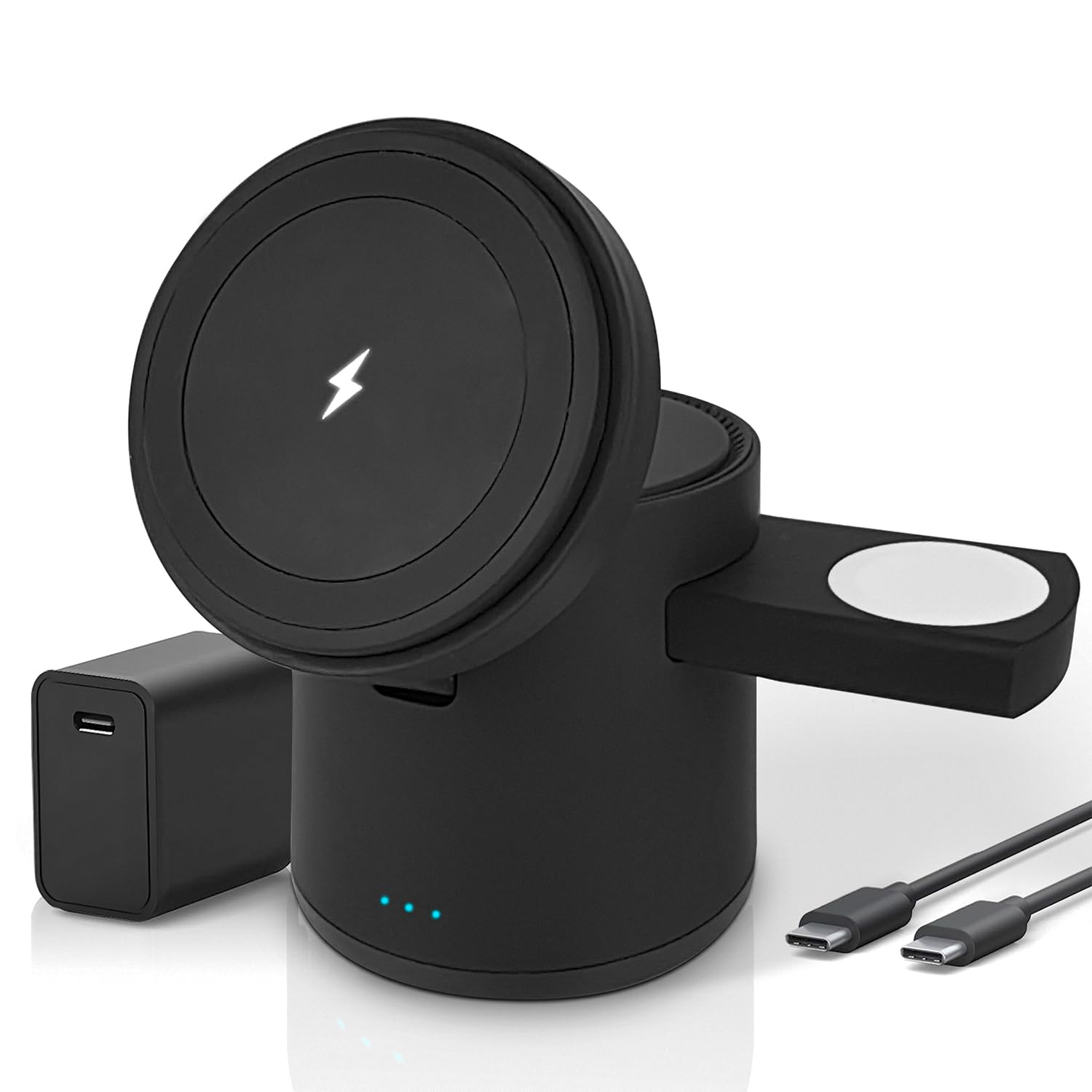 Estación de carga inalámbrica 3 en 1 para iPhone 16 Pro Max/15/14, Apple Watch Ultra/10/9/8/SE, AirPods Pro/3/2 – Base de carga rá