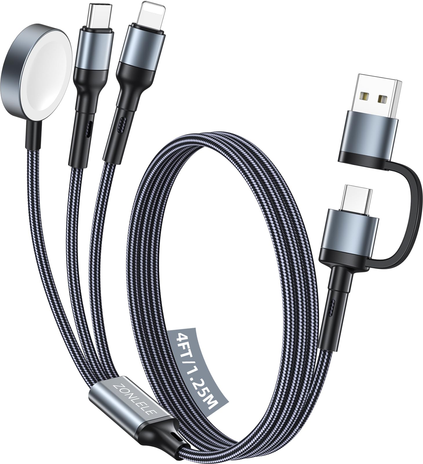 Cable de carga múltiple 5 en 2 para cargador de Apple Watch: entrada USB A/C, Lightning/tipo C/Micro/Mini B/salida inalámbrica, co