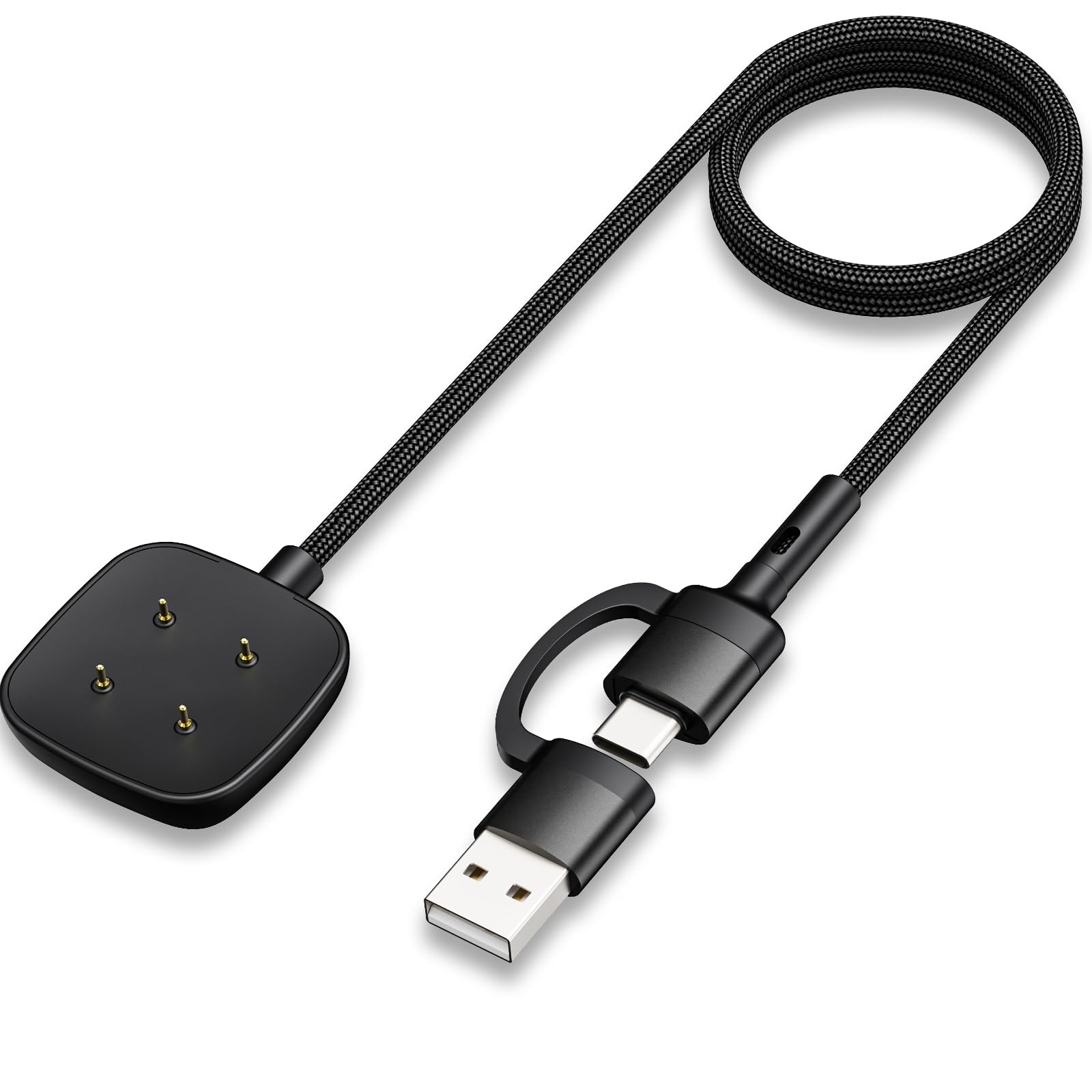 Cargador USB 2 en 1 actualizado para Fitbit Sense/Versa 4/Versa 3/Sense 2, repuesto de 3.3 pies, cable de carga para reloj intelig