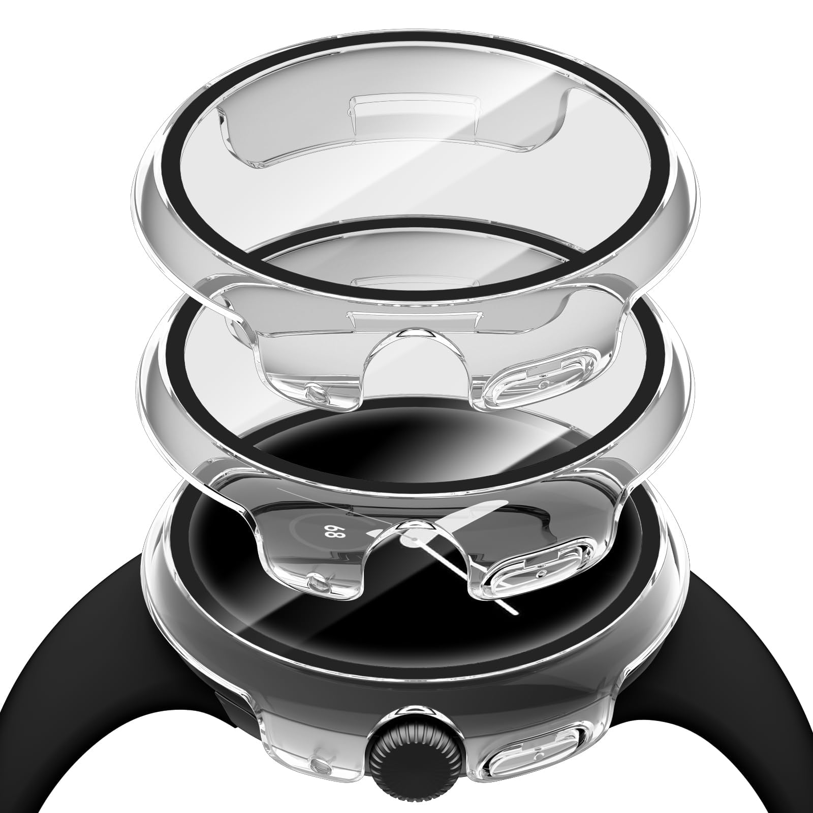 Paquete de 3 fundas con protector de pantalla compatible con Google Pixel Watch 2, alta sensibilidad, a prueba de golpes, carcasa