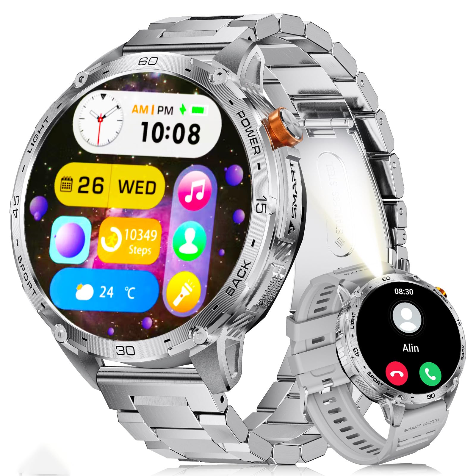 LIGE Reloj inteligente para hombre con linterna, reloj inteligente de 1.43 pulgadas con pantalla siempre, más de 100 modos deporti