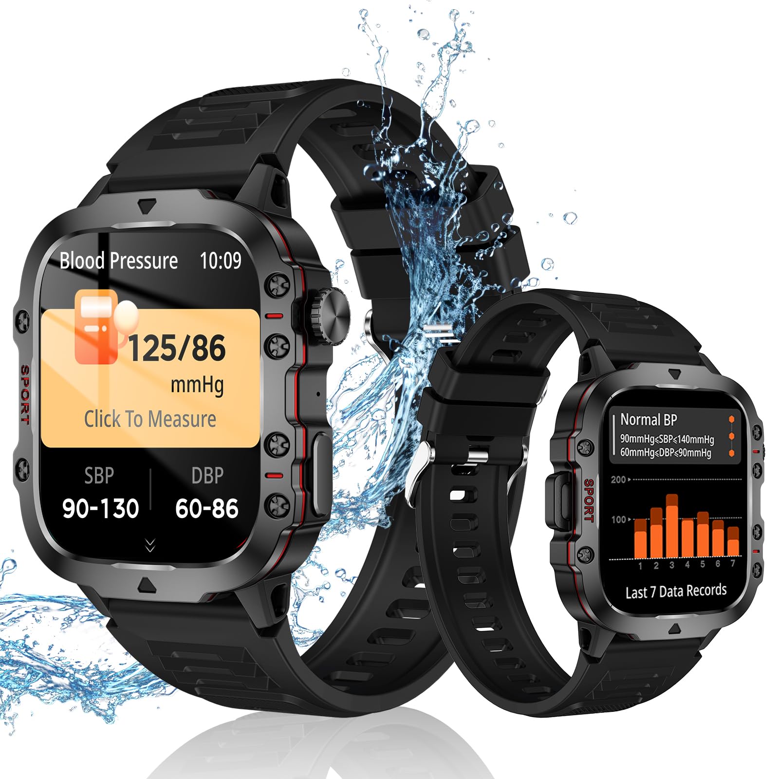 Reloj de presión arterial para hombres, reloj inteligente con monitor de presión arterial, pantalla táctil de alta resolución de 1