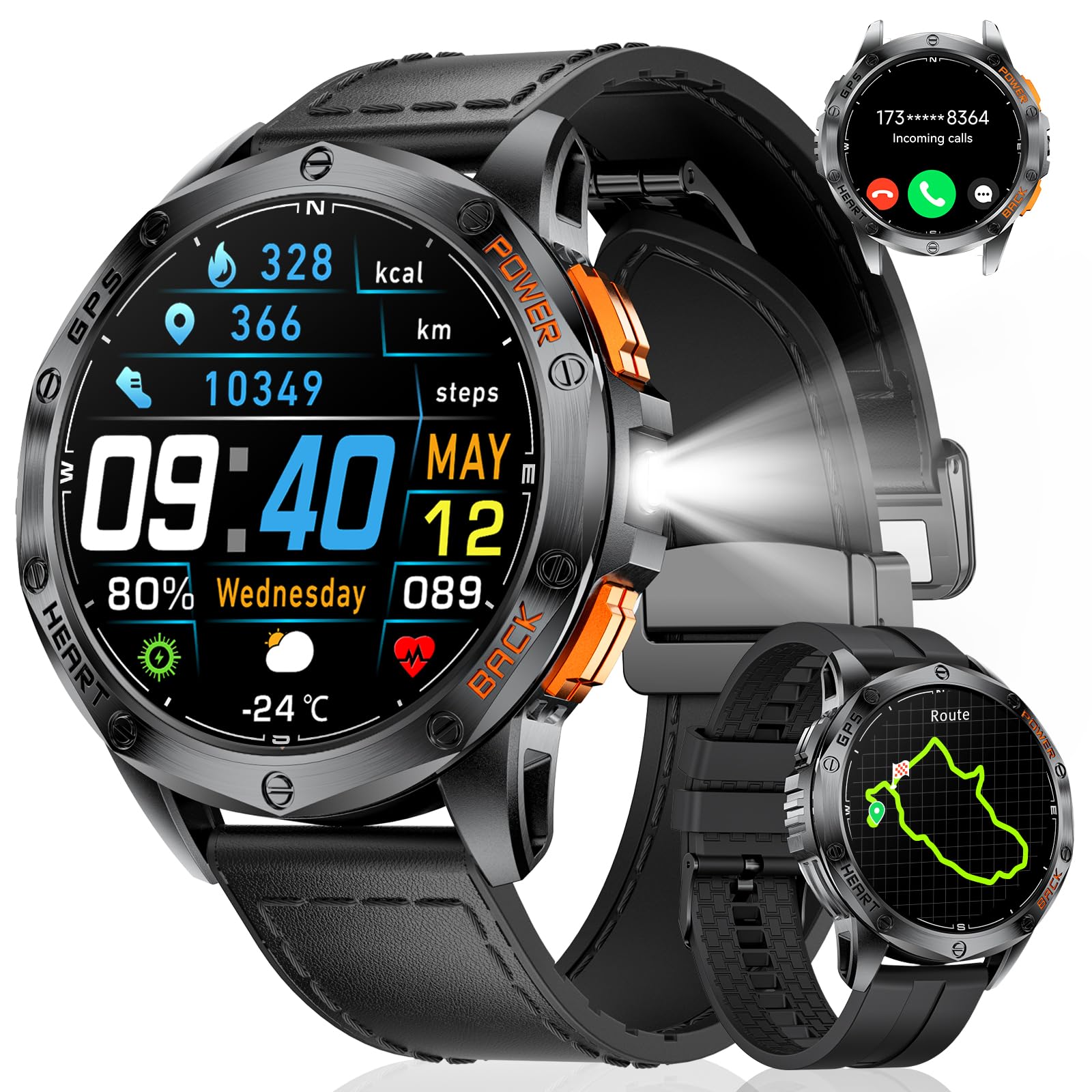 Relojes inteligentes con GPS para hombres, rastreador de actividad AMOLED de 1.43 pulgadas con linterna LED, brújula, batería de 5