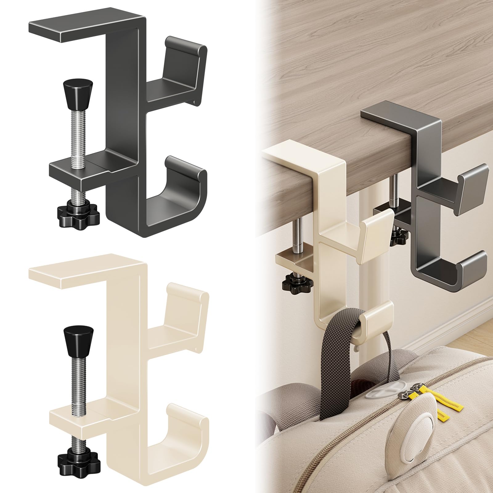 Paquete de 2 ganchos de escritorio para bolsa, colgador de bolso debajo del escritorio para mesa, soporte de mochila de aluminio,