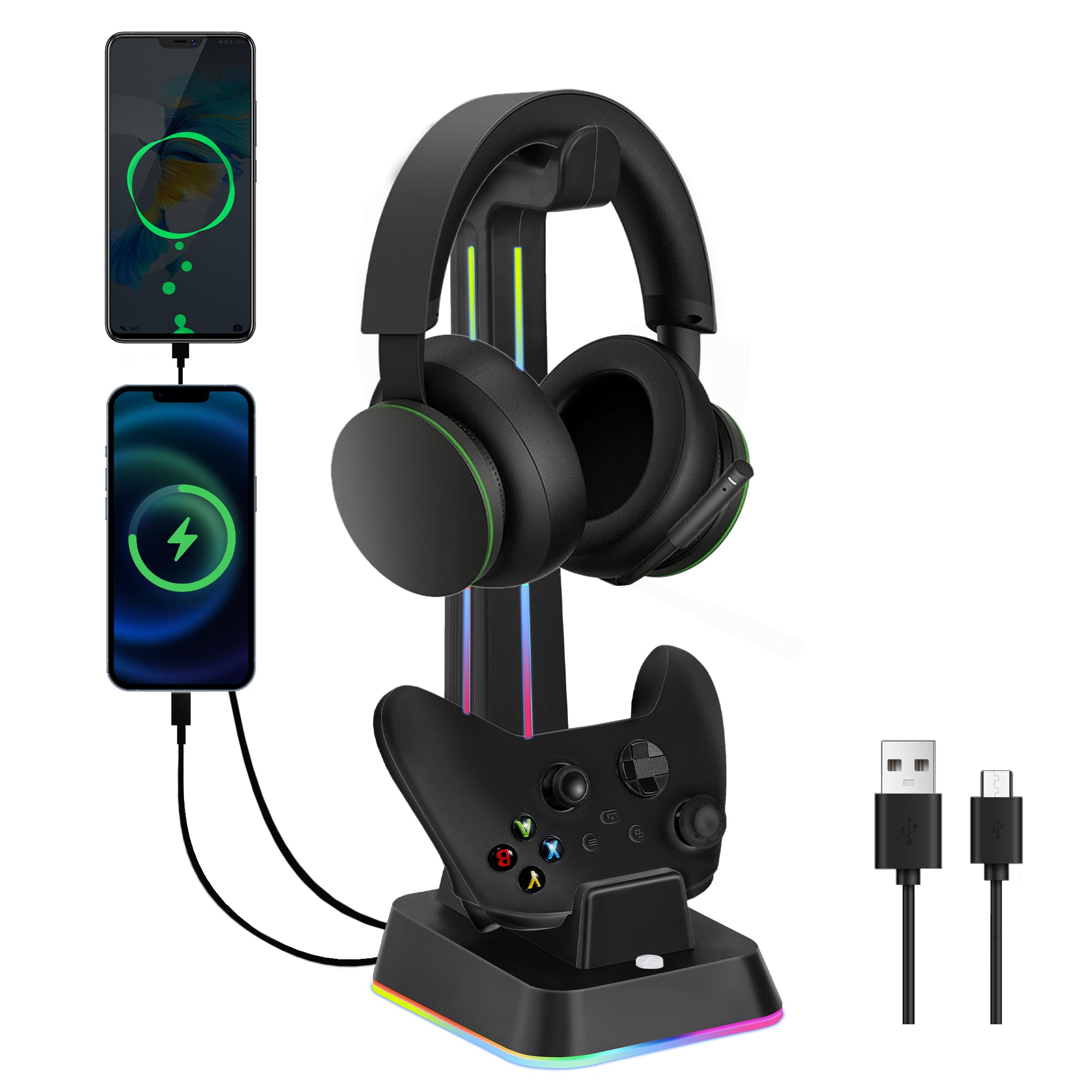 Cargador de controlador con soporte para auriculares RGB para Xbox Series X/S, estación de carga de controlador con 2 puertos de c