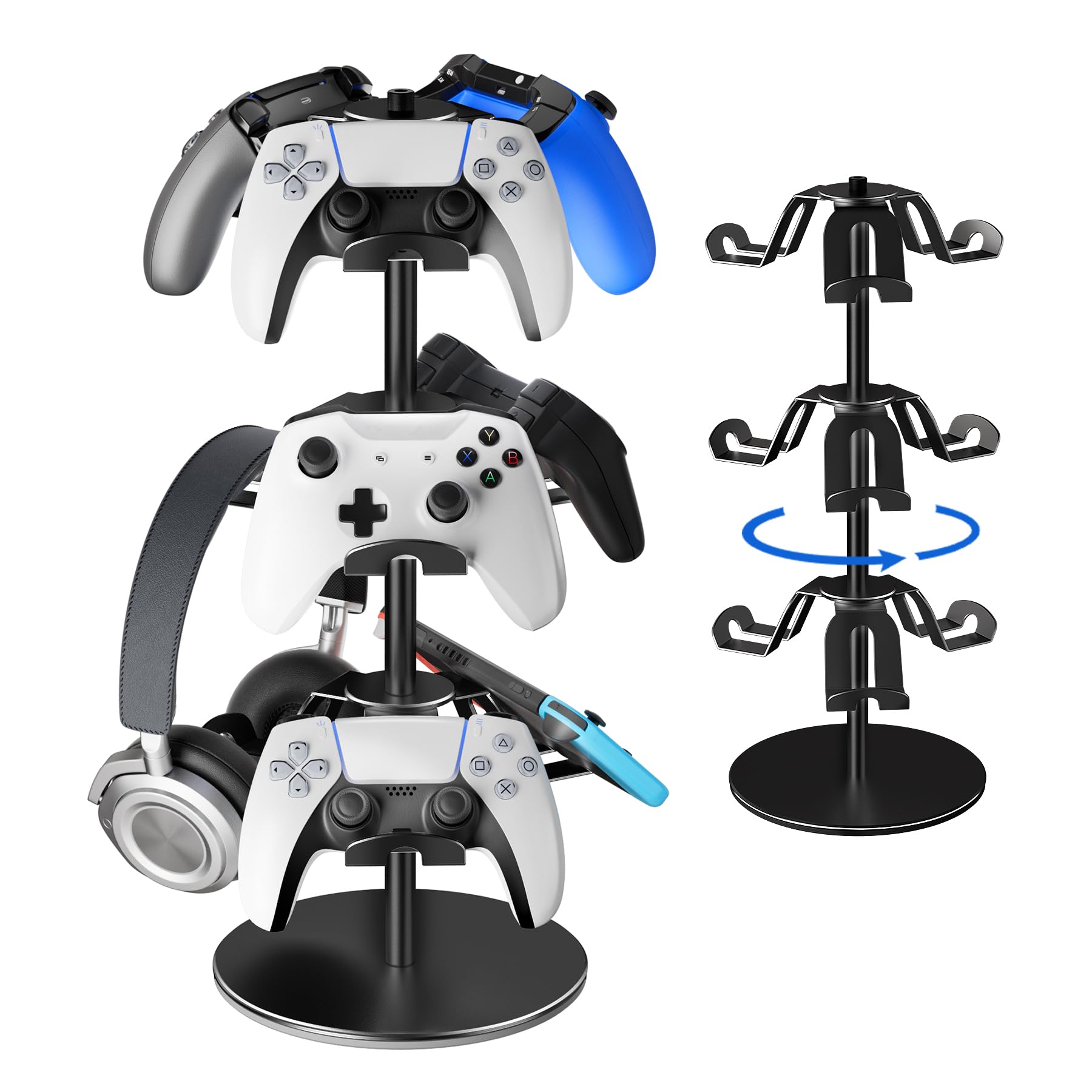 Soporte para controlador de 3 niveles, soporte giratorio para auriculares para juegos compatible con Xbox PS5, PS4, Nintendo Switc